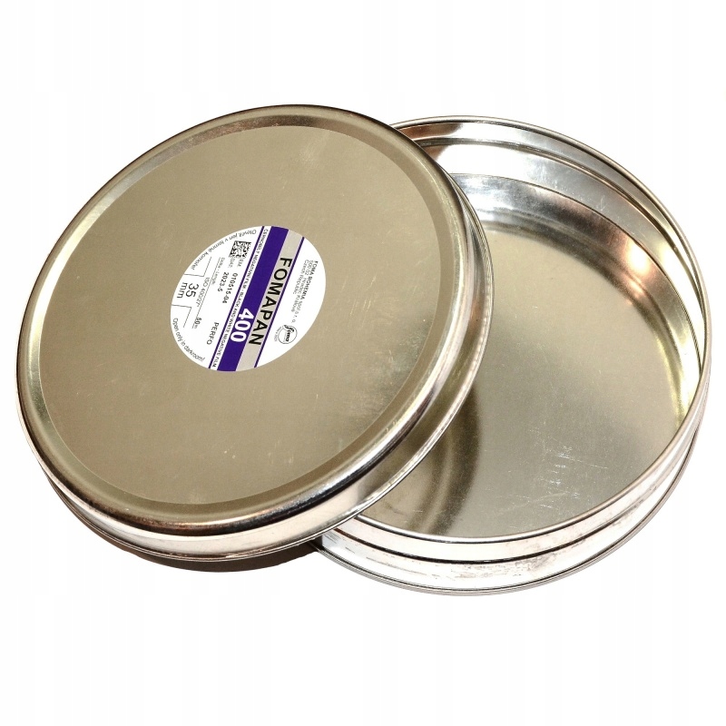 Предлагаем: Пустую 50-метровую черно-белую банку из-под пленки Фомапан - с крышкой и наклейкой, как на фото пленки