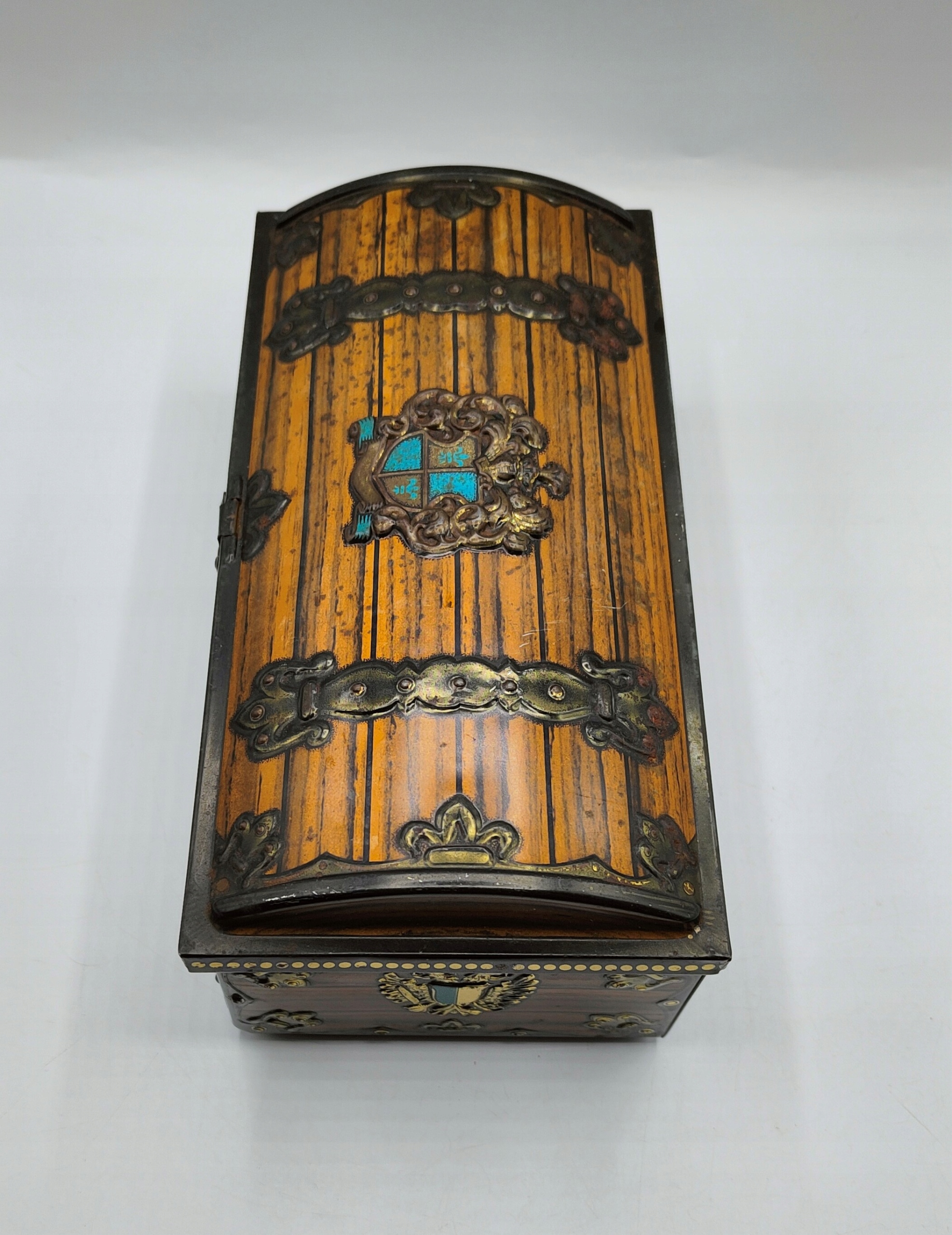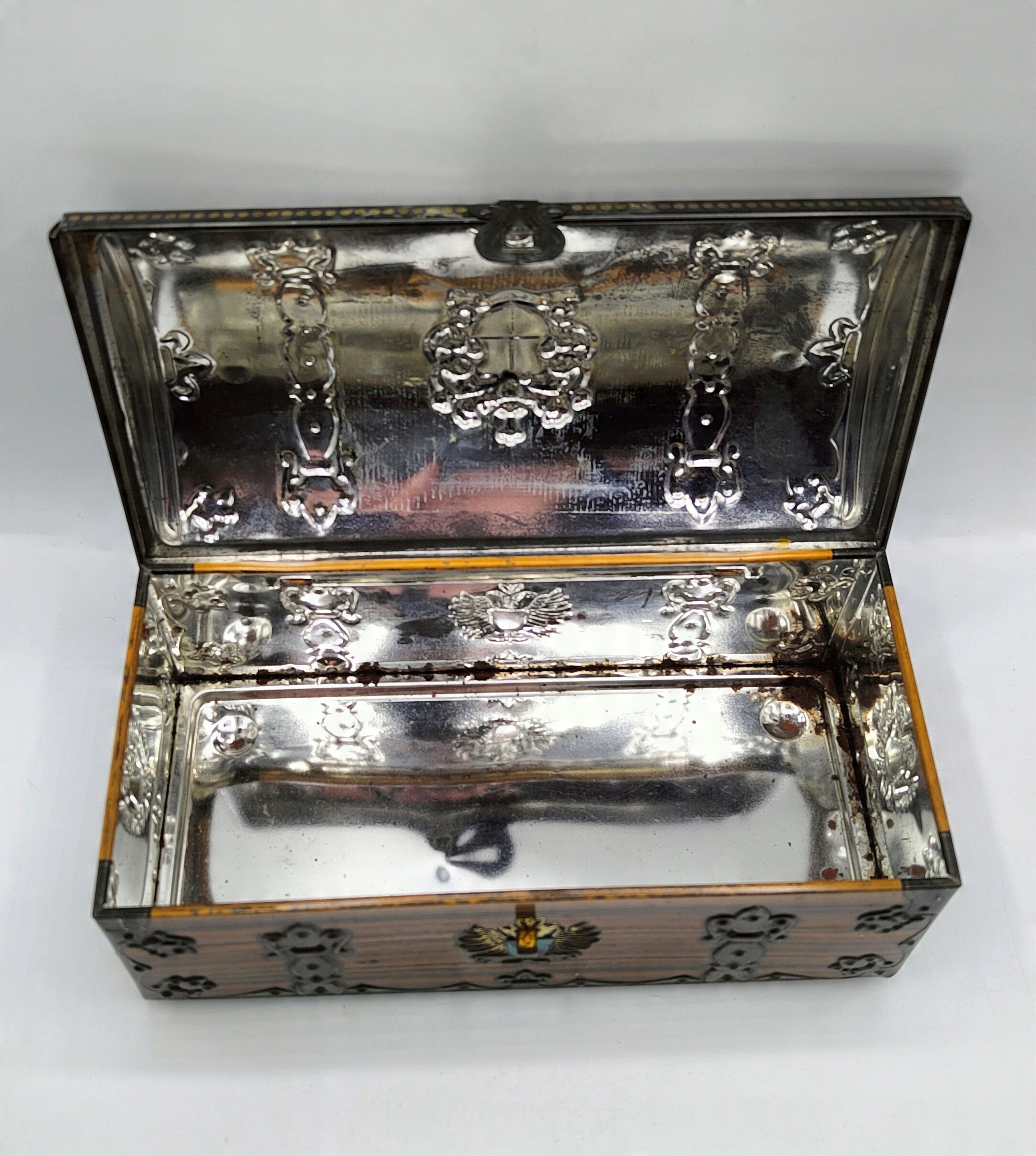 ОЧЕНЬ СТАРЫЙ металлический ящик - похож на дворцовый сундук ;) - повсюду гербы!
