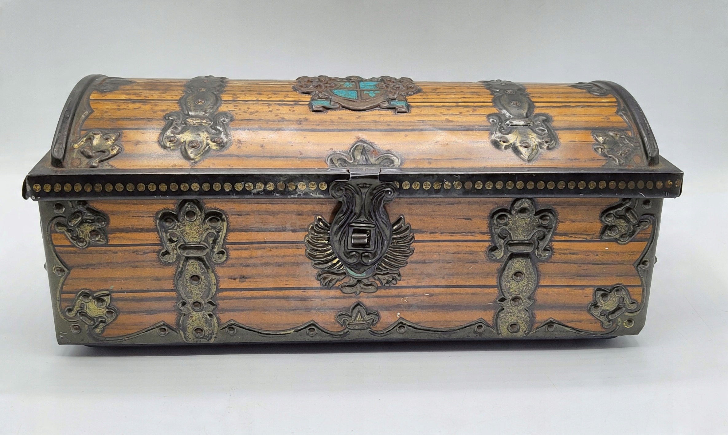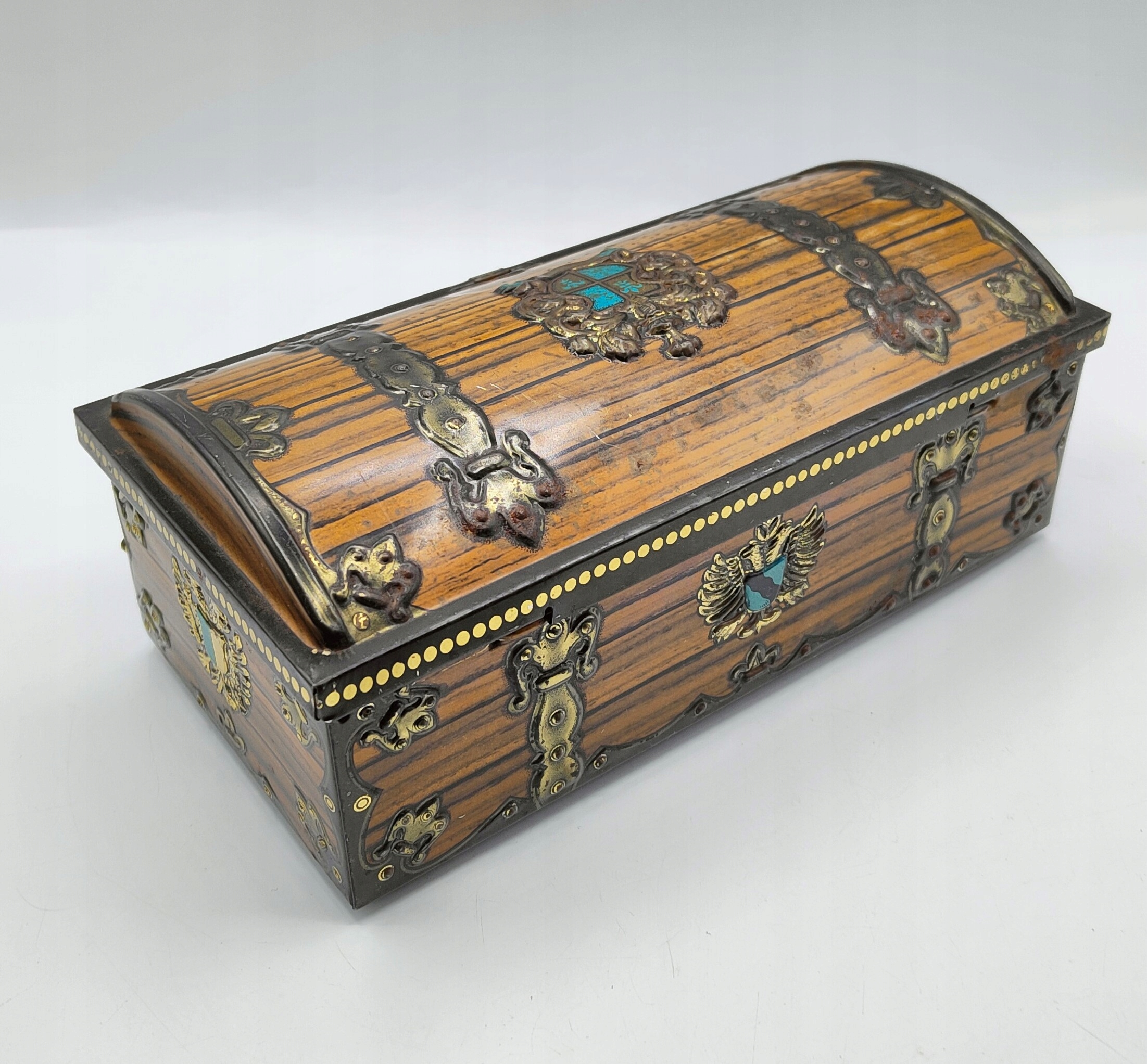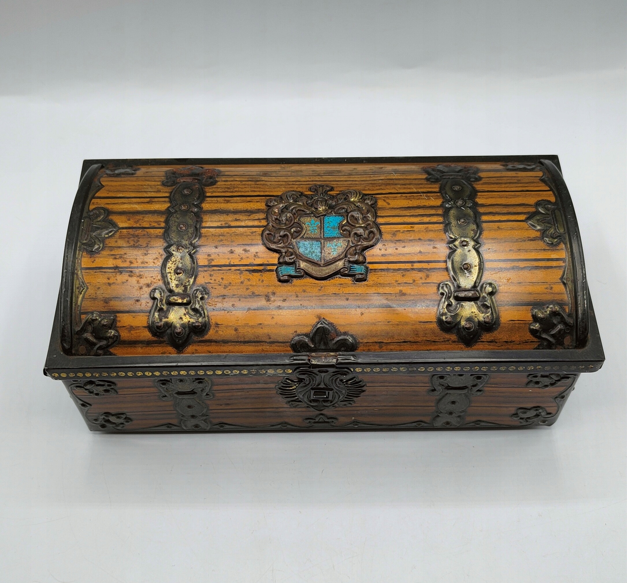 PUSZKA z metalu BARDZO STARA -wygląda jak Kufer z pałacu ;) wszędzie herby