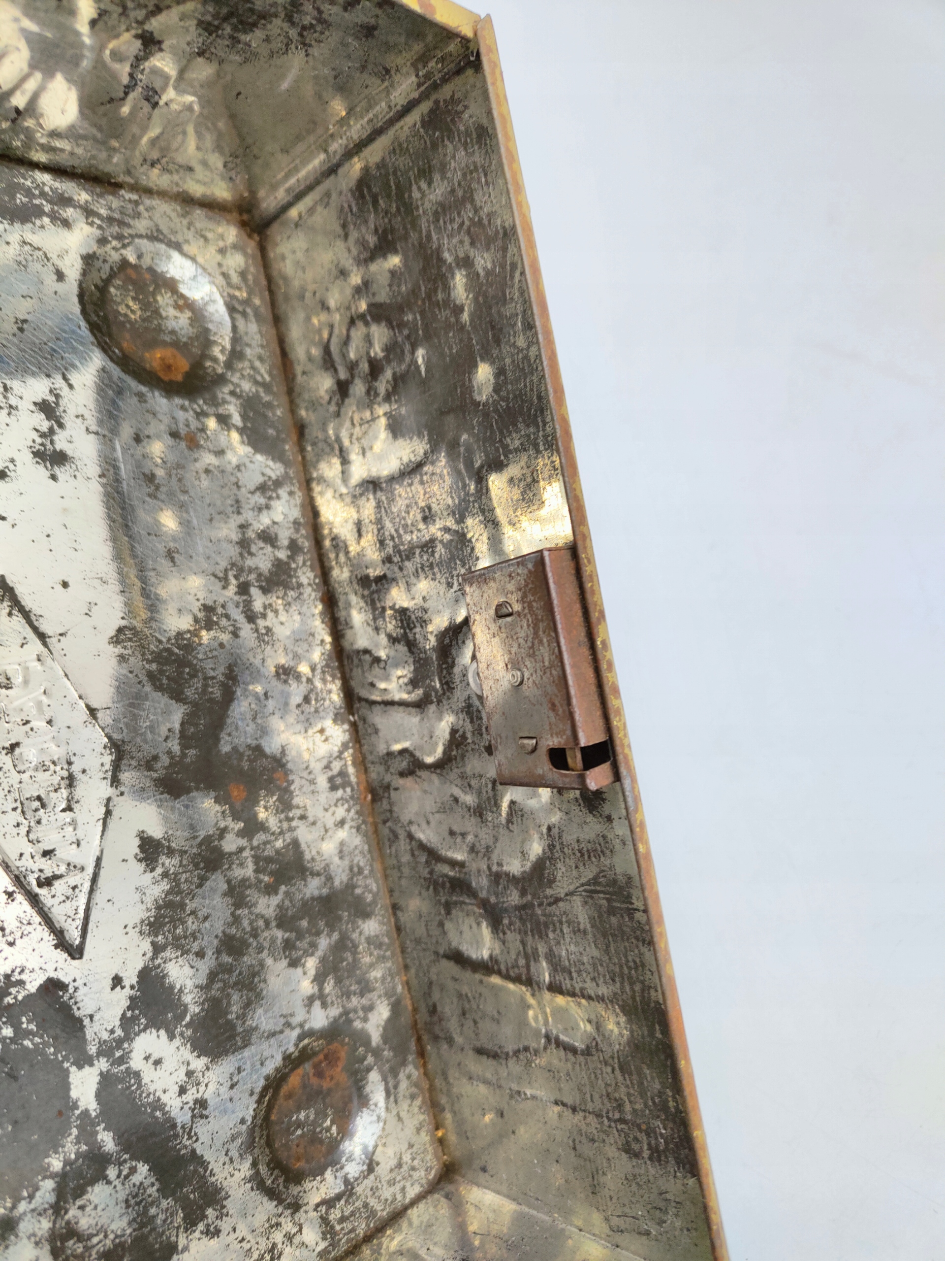 - предмет очень старый и на нем видно, потеря краски, царапины, некоторая коррозия, на мой взгляд, это только добавляет шарма банке, она великолепна, притягивает взгляд - в ней есть душа, и в целом все дополнены красивыми сценами.