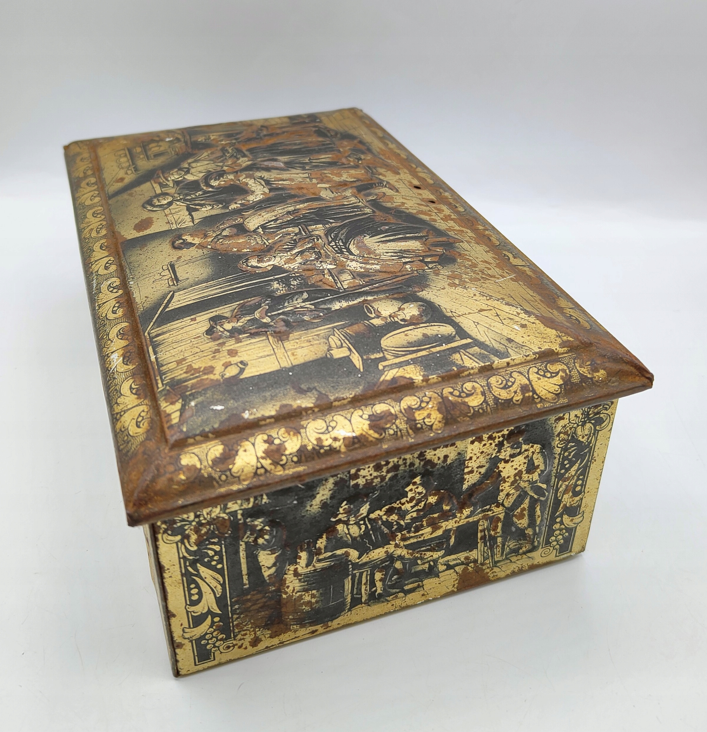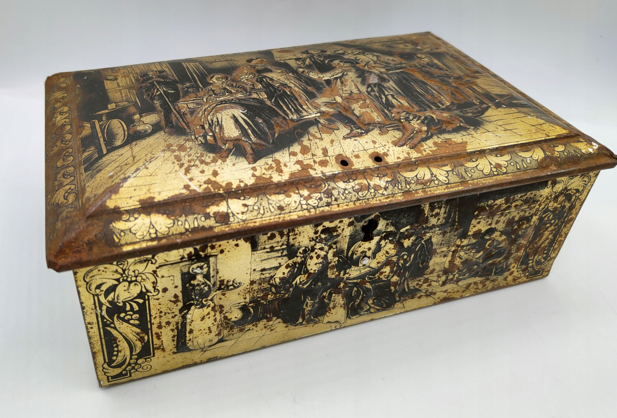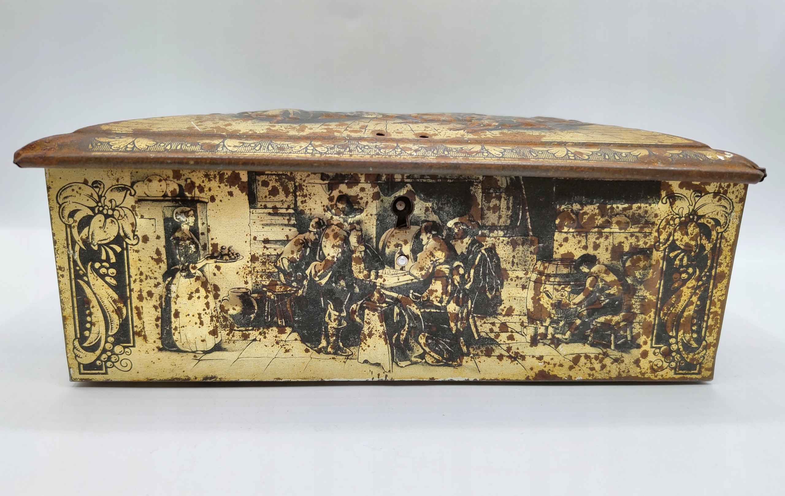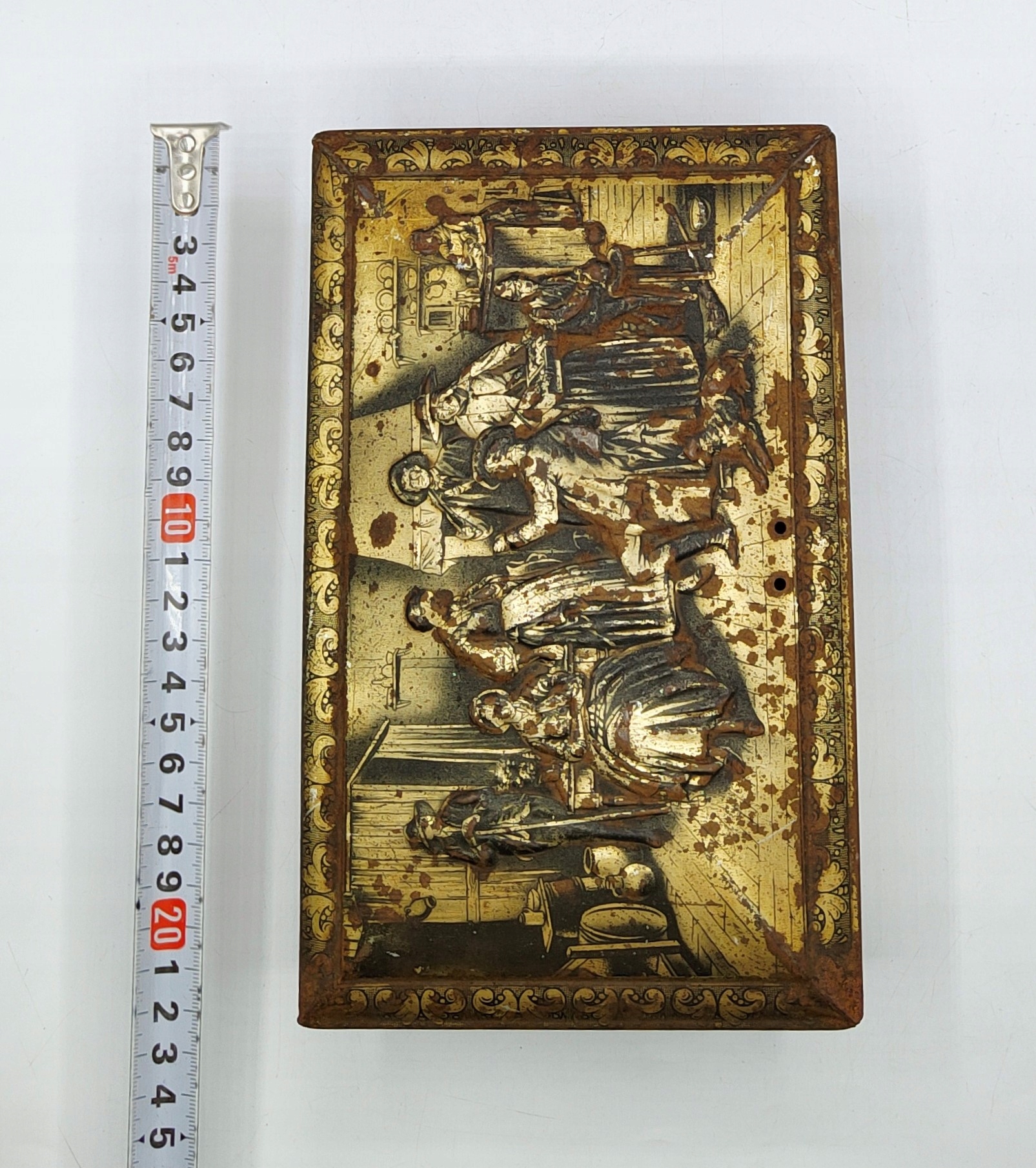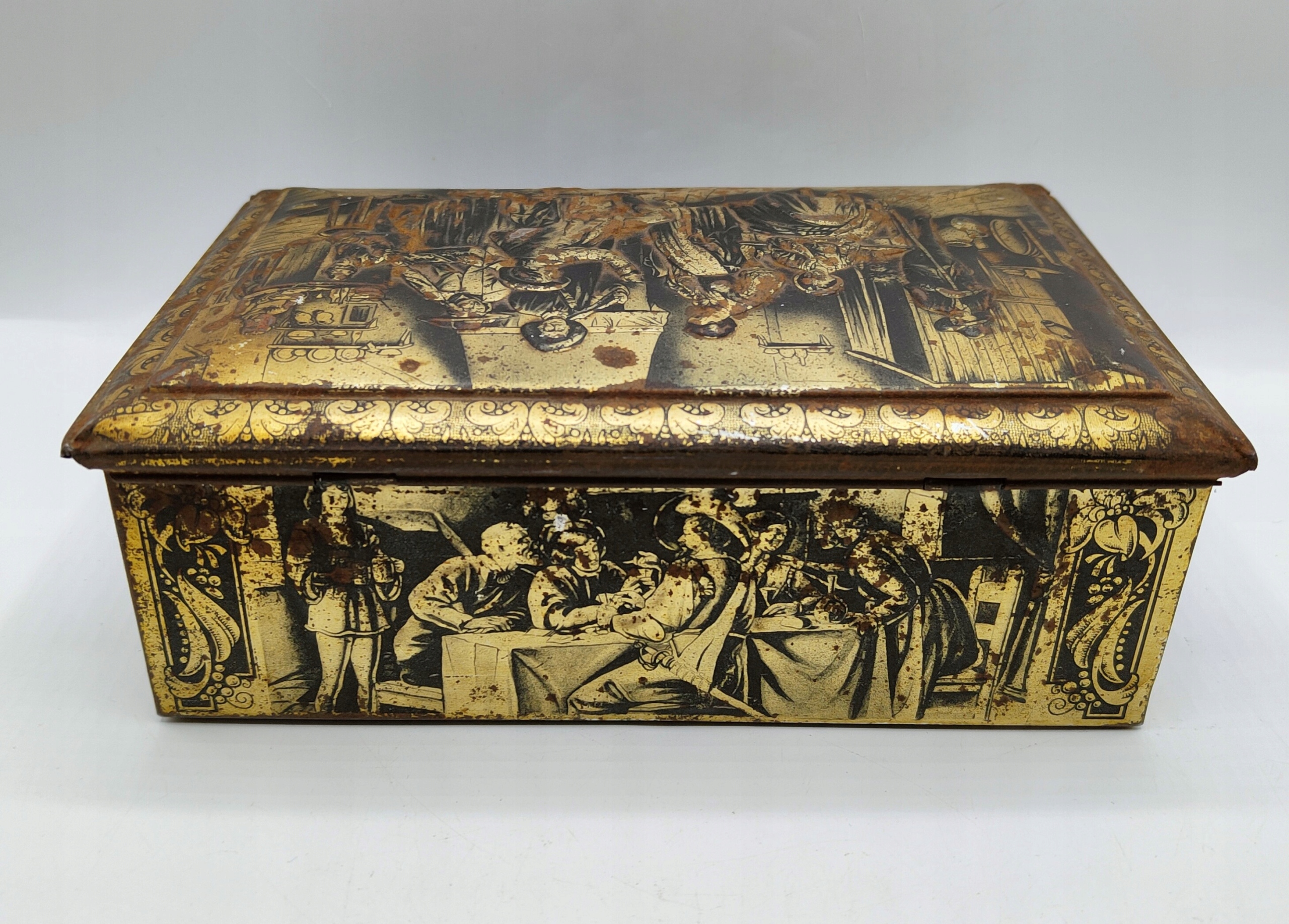 ОЧЕНЬ СТАРЫЙ металлический ящик - рыцари и дворяне, пирующие в корчме/трактире,
