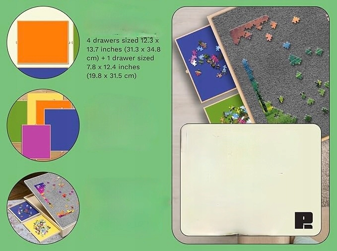 Содержит четыре просторных съемных ящика с цветовой маркировкой, что позволяет легко сортировать детали головоломки по форме, цвету или разделу.