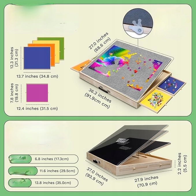 Вся доска окружена элегантной деревянной рамкой, поэтому ваши пазлы и детали Lego всегда будут организованы.