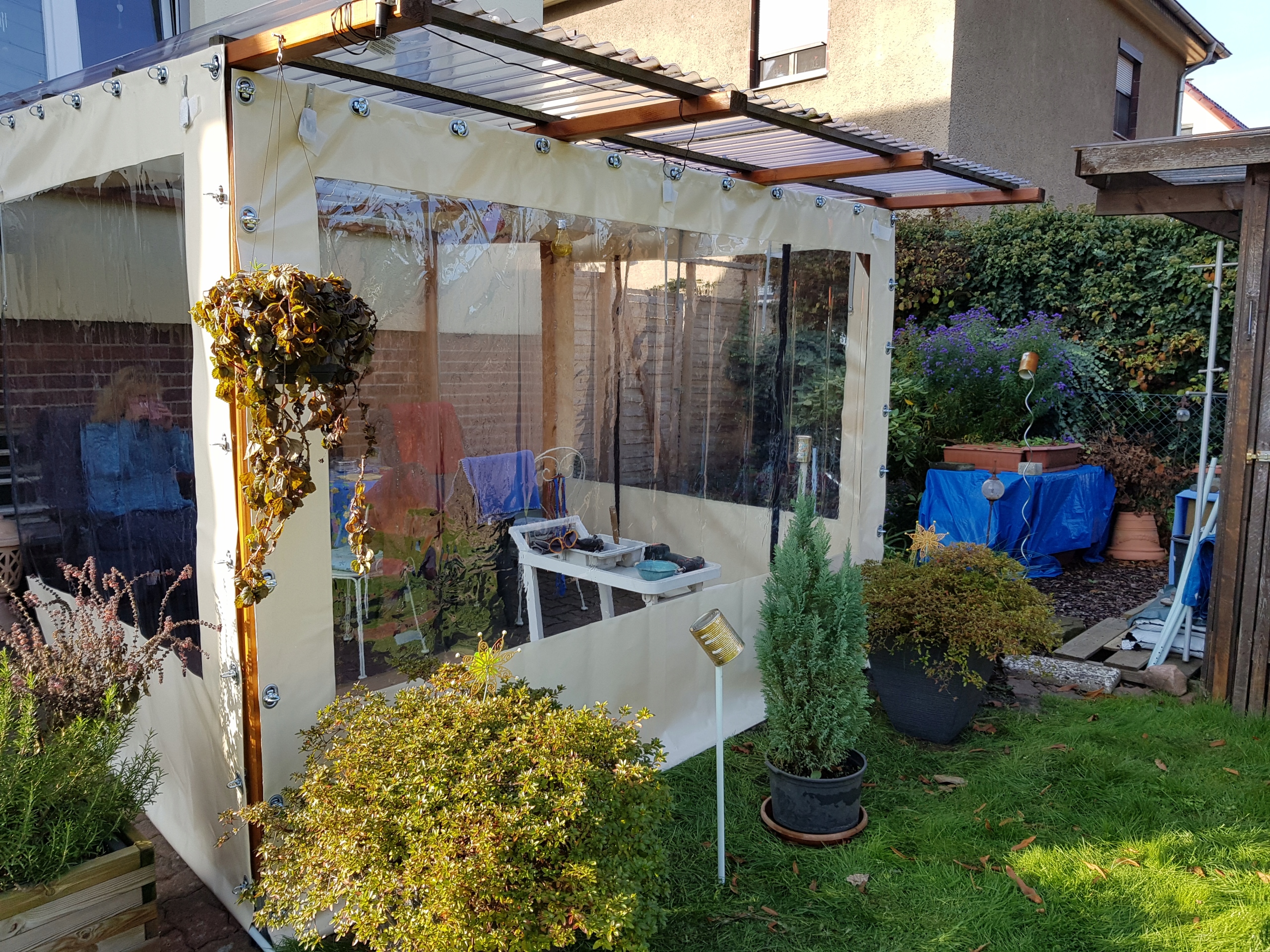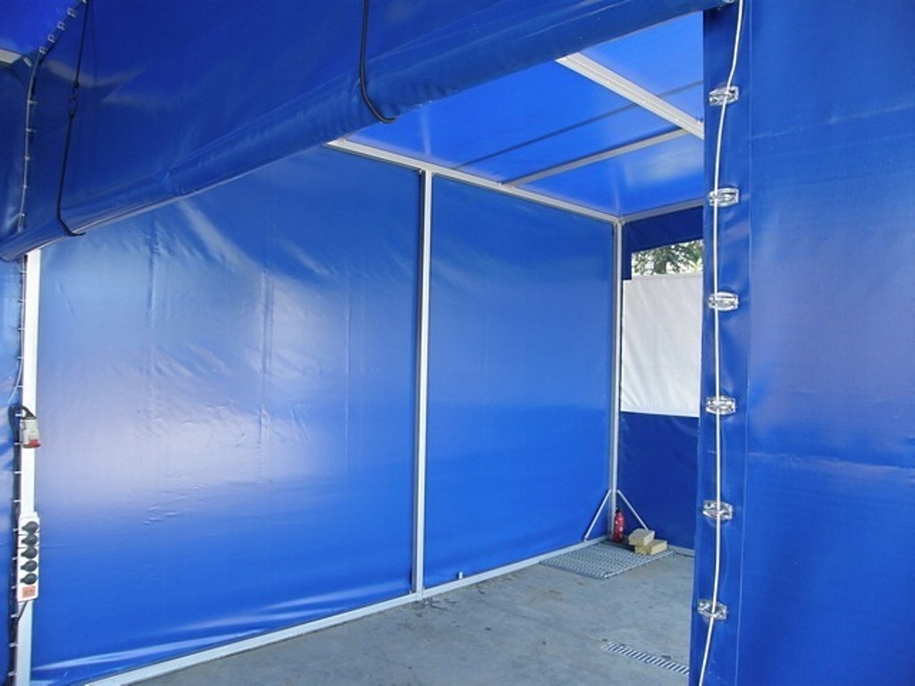 ДРУГОЙ СПОСОБ УСТАНОВКИ ЗАНАВЕСЫ — С СДВИГАНИЕМ БРЕЗЕНТА ПО РЕЙКАМ.