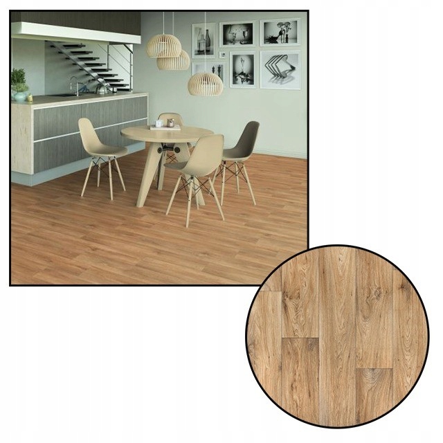 Эластичный коврик с рисунком, имитирующим деревянные панели. Пол изготовлен из поливинилхлорида, также известного как ПВХ. Это ковер, предназначенный для домашнего использования. Толщина предлагаемого ковролина 2,7 мм и слой износа 0,2 мм, предназначен для жилых помещений со средней проходимостью. Прочный - устойчивый к вмятинам и перегибам и УФ-лучам.