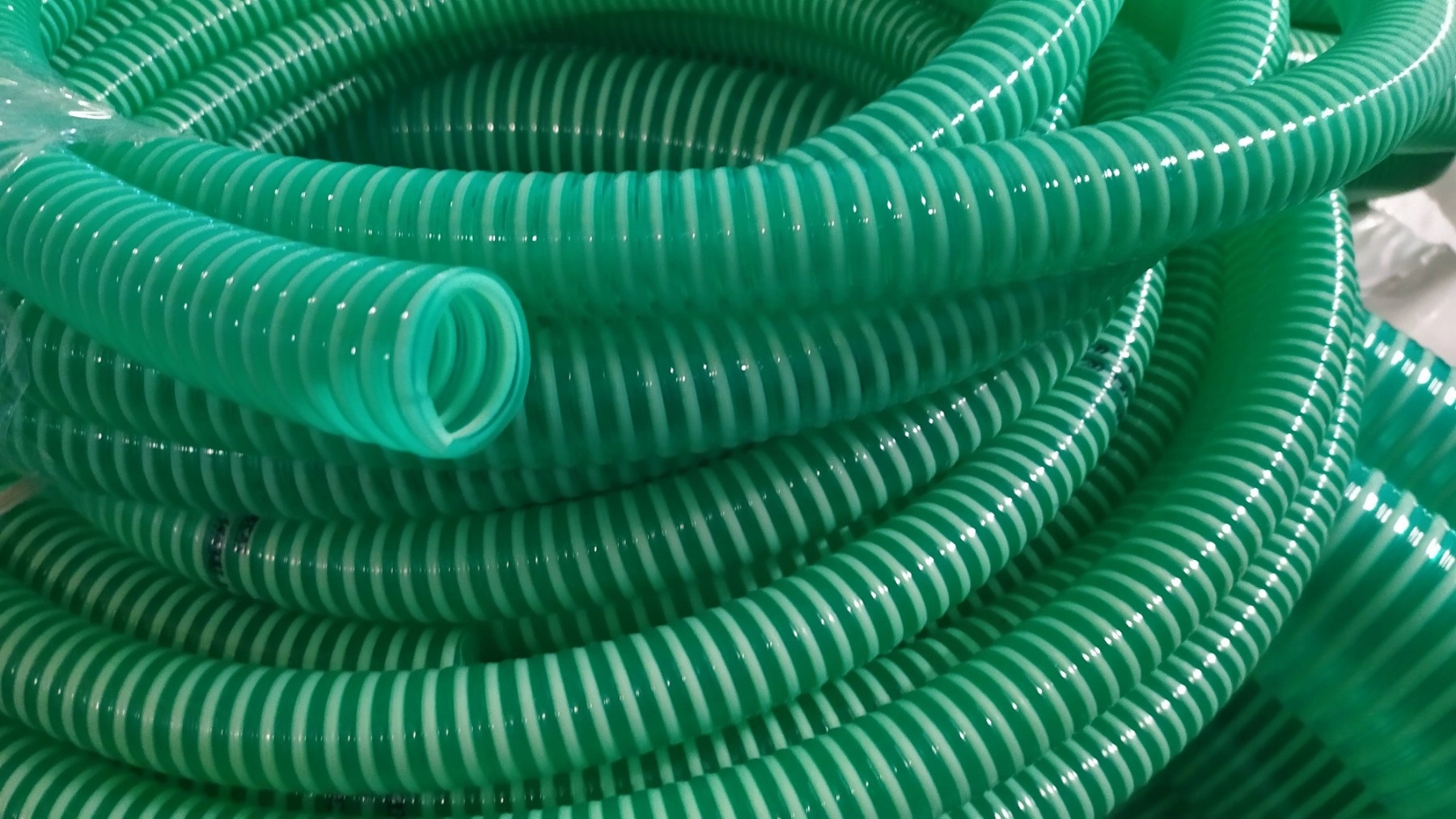 Шланг из прозрачного размягченного ПВХ с жесткой ПВХ-спиралью и гладкой внутренней поверхностью.