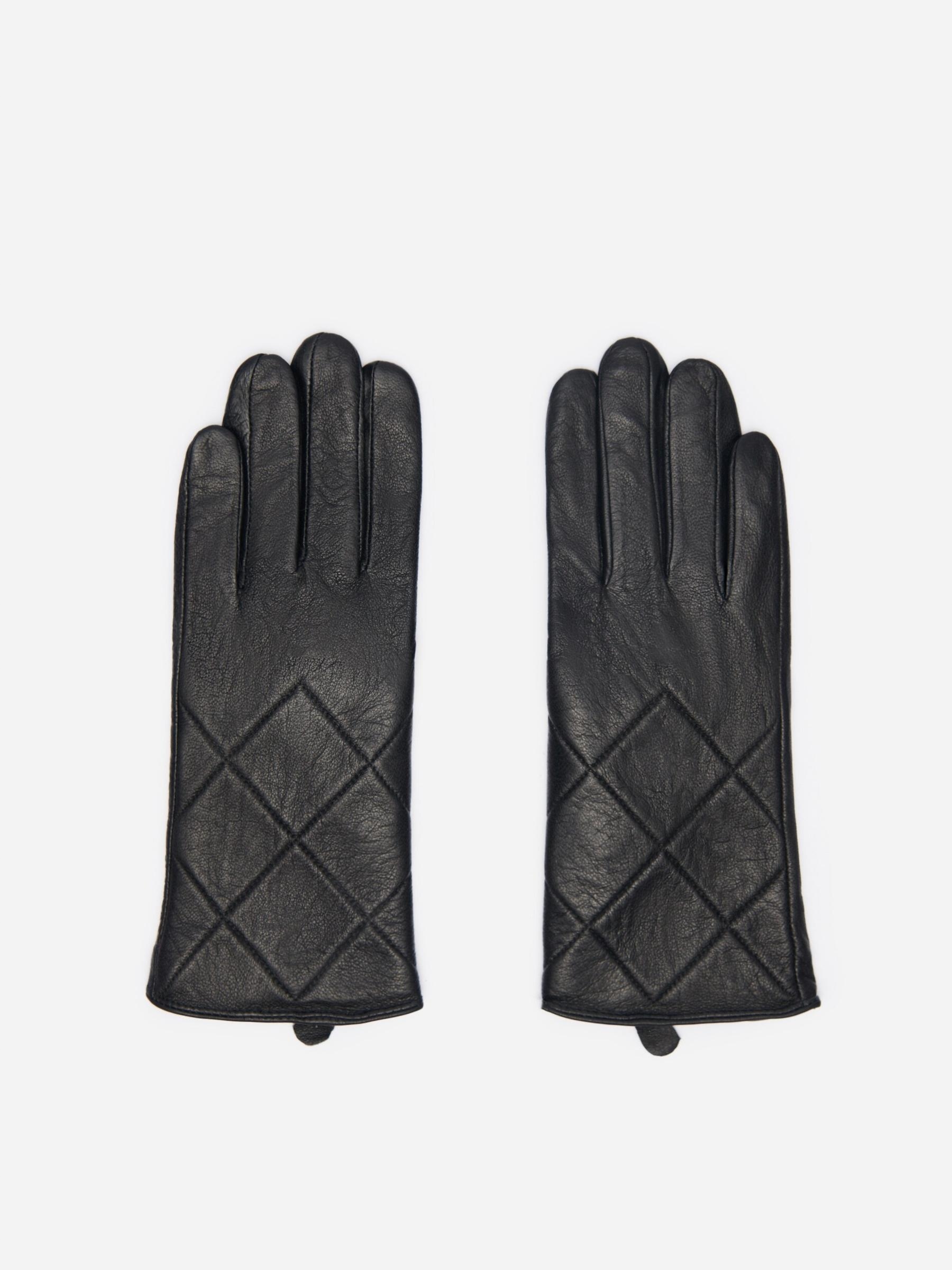 Пятифедные черные перчатки с стеганым натуральным кожаным домом m