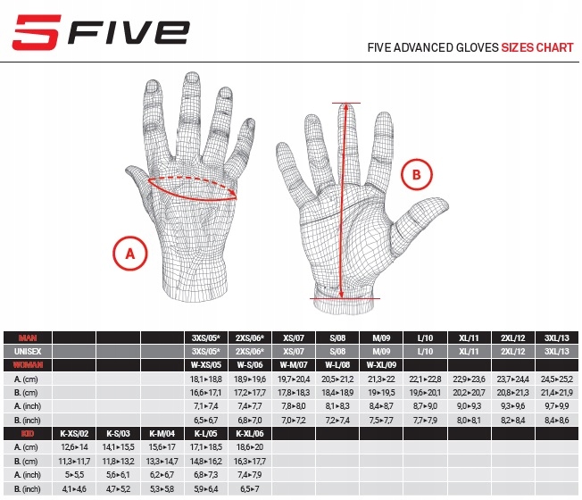 пять - французская марка мотоциклов и велосипедных перчаток. Компания специализируется только на производстве перчаток. Каждая пара перчаток, появляющихся в предложении этой компании, имеет ряд деталей, характерных только для этого бренда. Некоторые из этих решений являются оригинальными и запатентованными узорами, такими как мост, соединяющий два наименьших пальца руки или V -образованная система липучки, обеспечивая исключительную эргономику. Пять предлагает перчатки, адаптированные к любому стилю вождения. От муниципального трюка, через приключение к гоночной трассе. Мы приглашаем вас на другие наши аукционы.