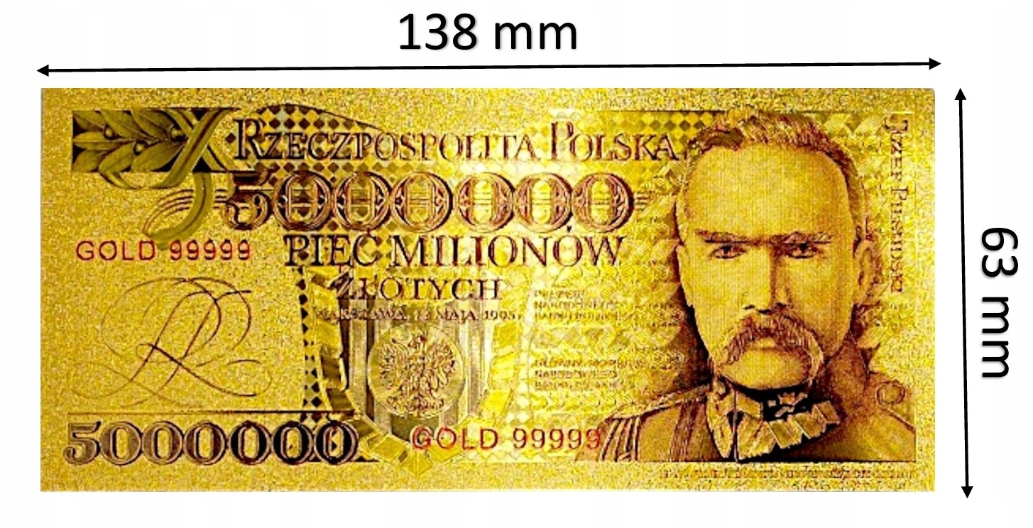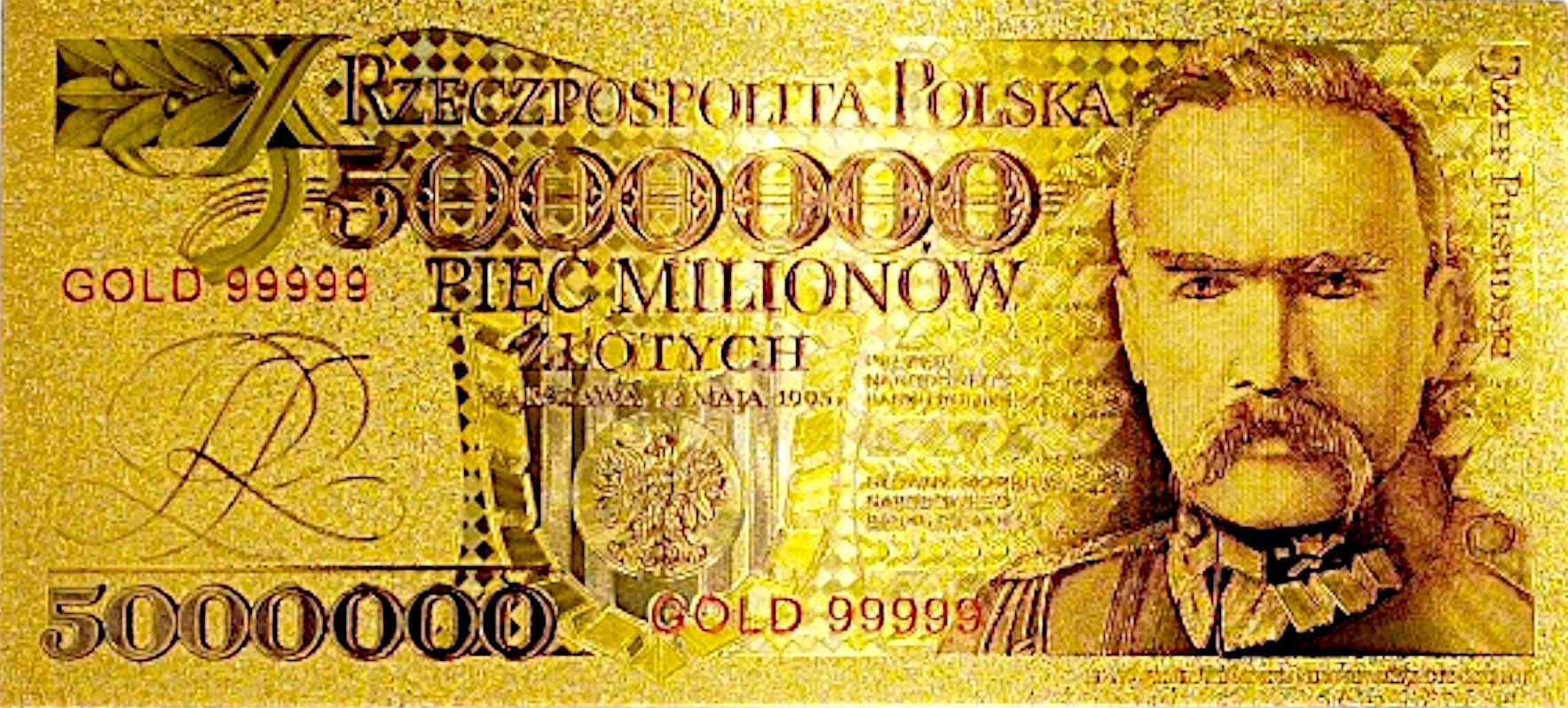 Юзеф Пилсудский, БАНКНОТА из ПВХ в пять миллионов долларов, PRL