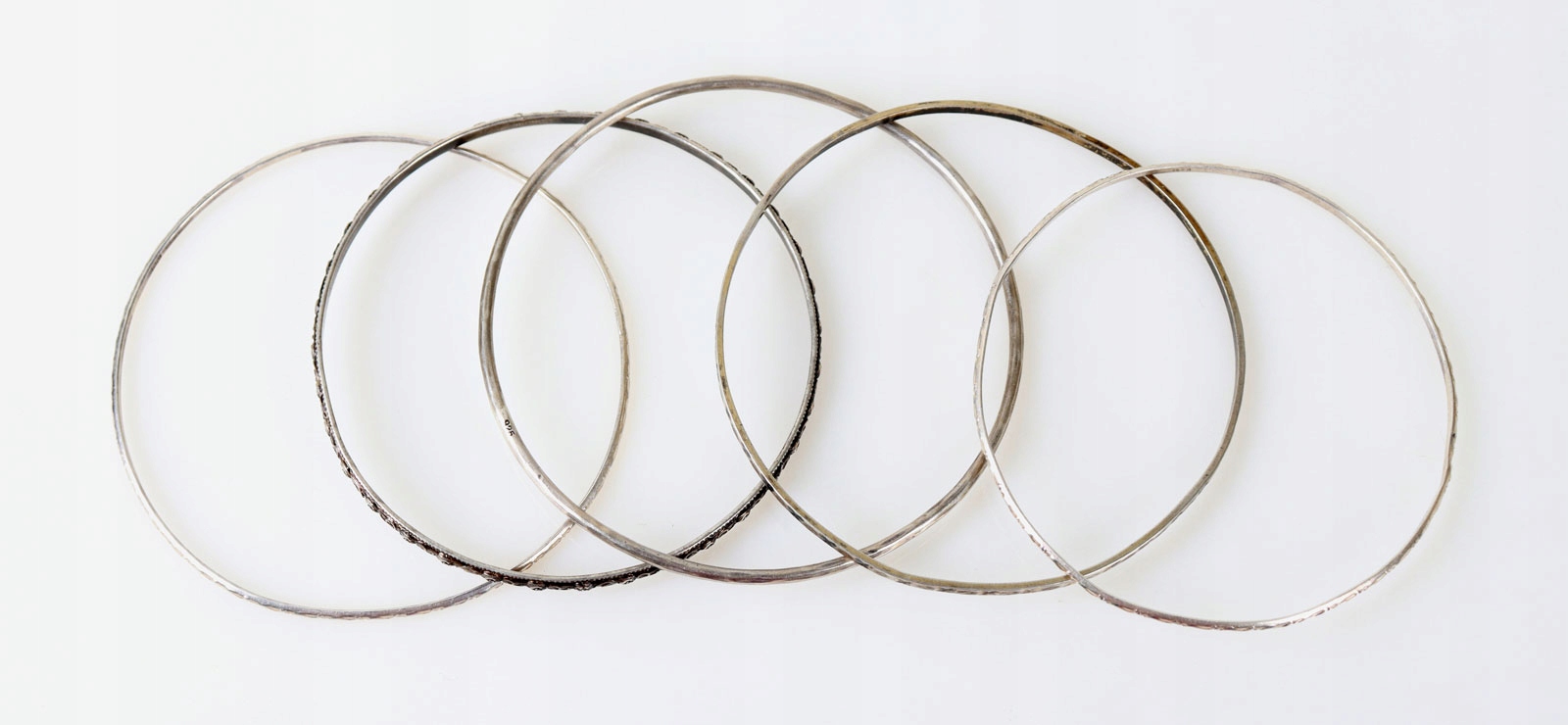 Пять браслетов-колециз серебра 835 пробы. Браслеты украшены геометрическими мотивами.
