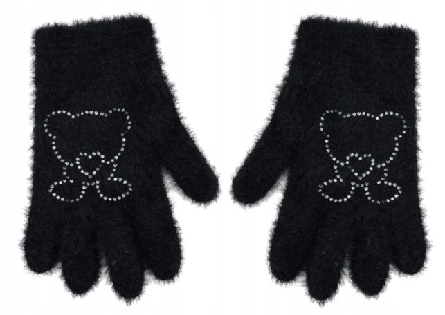 Пятилетние перчатки Пушистые девичьи черные 14см 4-5 V032ń