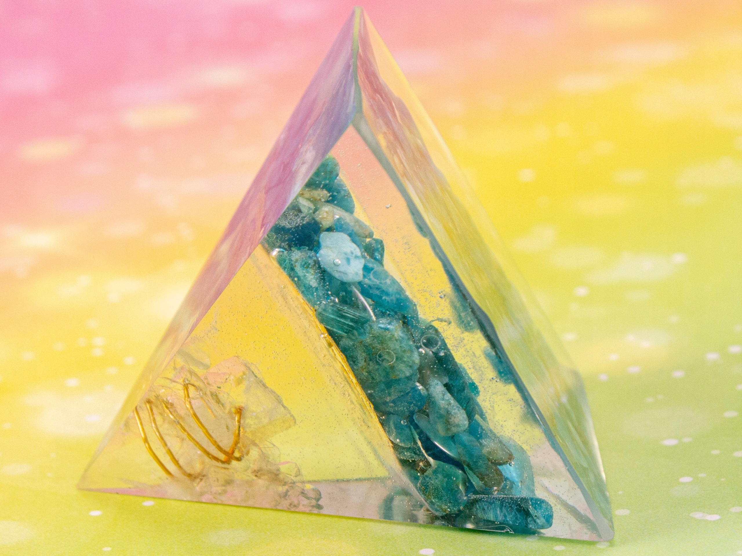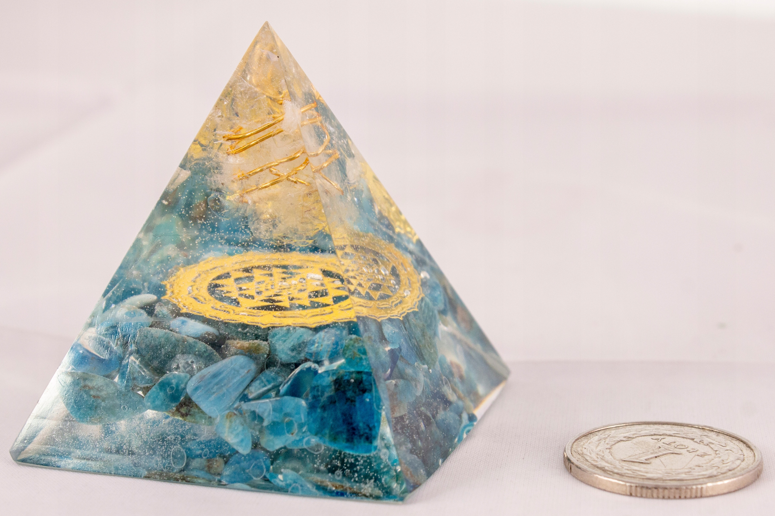 PYRAMID ORGONITE PYRAMID DANBURITE APATITE SRI YANTRA RADIATION REMOVER 5 см