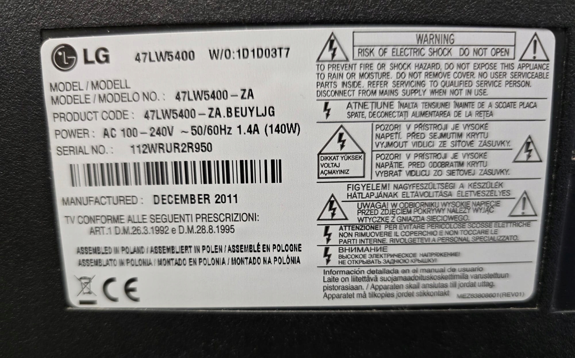 PŁYTA GŁÓWNA EAX64290501 EBT61680911 LG 47LW5400