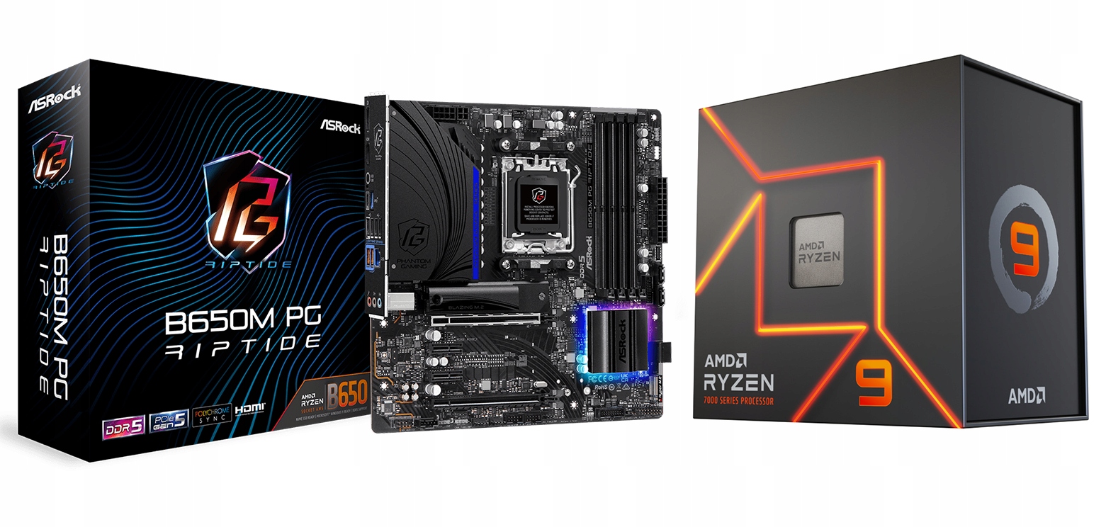 Płyta główna Micro ATX ASRock B650M PG RIPTIDE + Procesor AMD Ryzen 9 7900X, 4.7 GHz, 64 MB, BOX (100-100000589WOF)