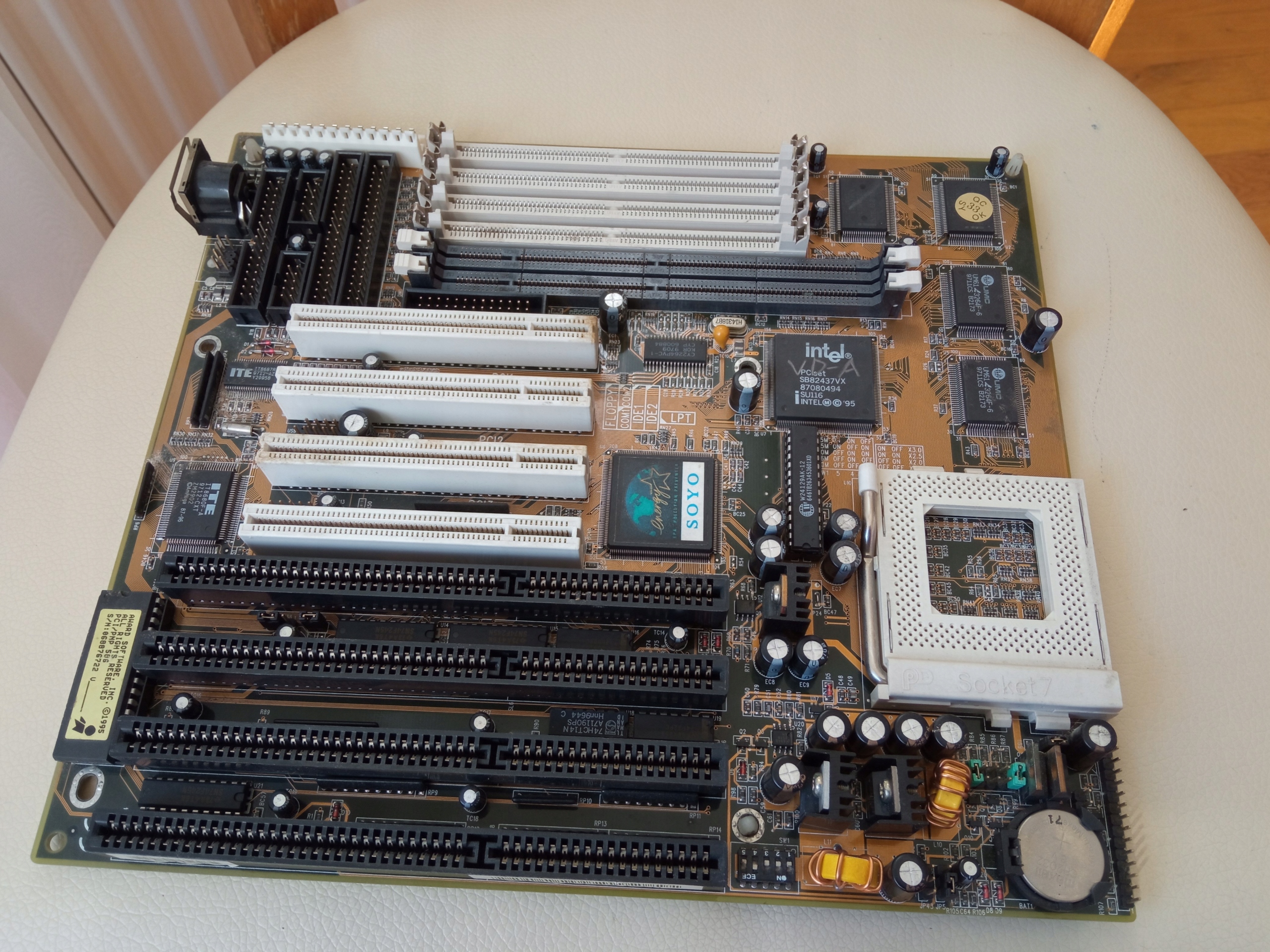 материнскую плату SOYO SY-5VD Socket 7, визуальное состояние и комплектность как на фотографиях, состояние неизвестно, не проверялось.