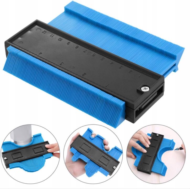 *Прецизионный контурный шаблон; С помощью этого устройства вы можете легко копировать форму объектов неправильной формы. Профили или кромки можно легко найти и точно перенести на разрезаемый материал. Подходит для деревянных или плиточных полов, укладки линолеума, круглых рамных труб.