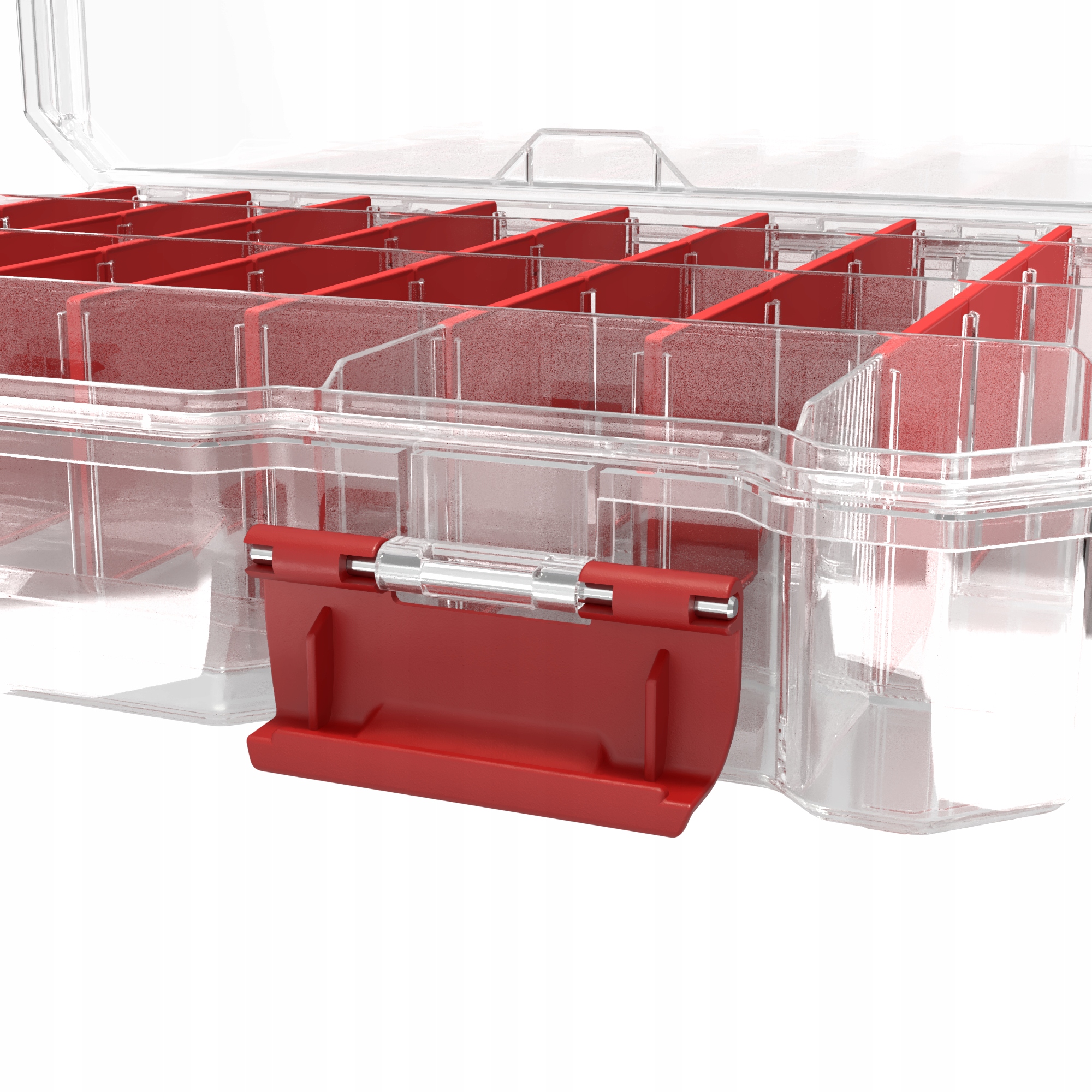 Органайзер оснащен 24 регулируемыми отделениями, которые можно свободно конфигурировать. Благодаря этому пользователь может создать до 32 независимых камер. Такая гибкость позволяет идеально подогнать пространство под различные виды аксессуаров – от маленьких шурупов до более сложных рабочих элементов.