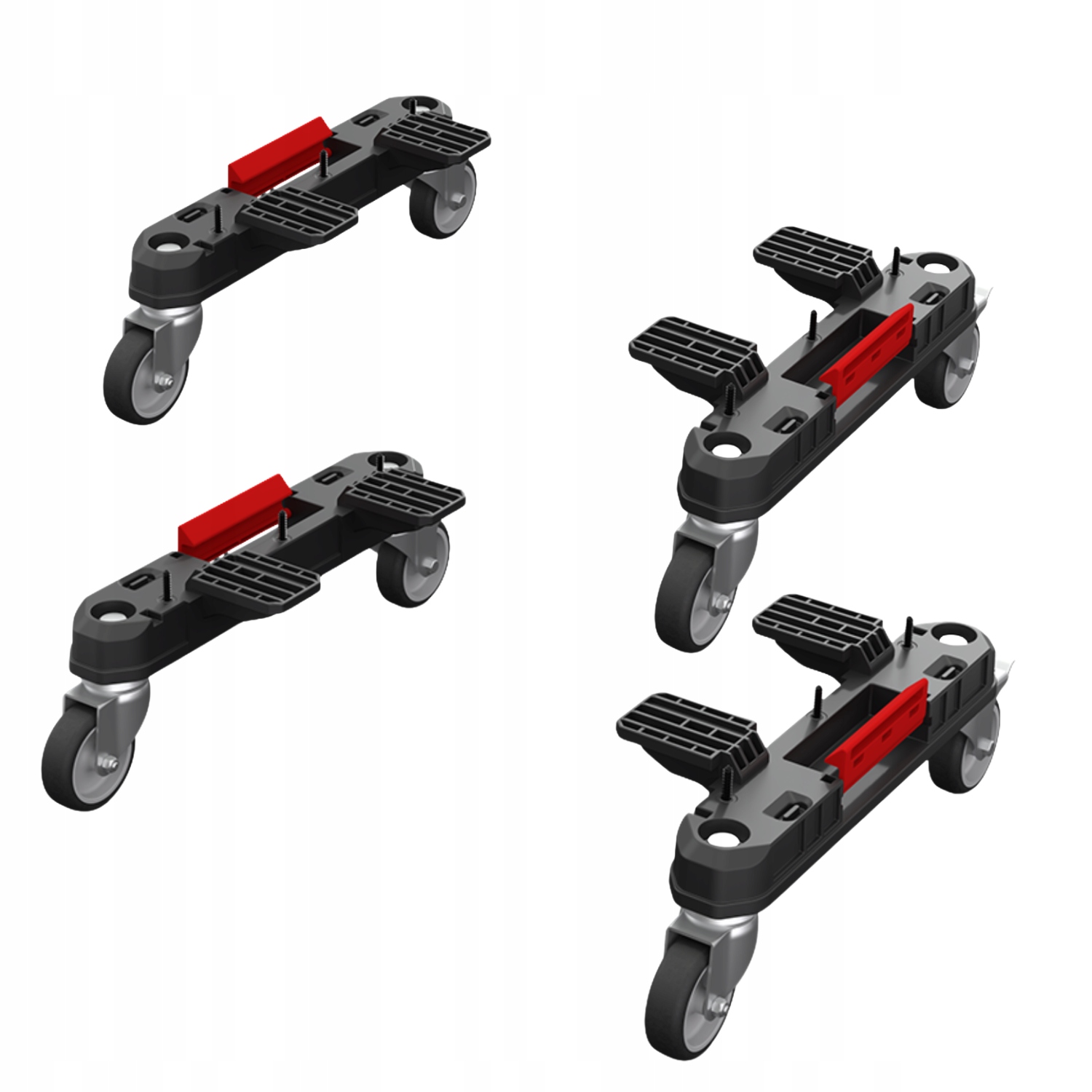 Каждый адаптер оснащен двумя прочными поворотными колесами. Два из них имеют тормоз, позволяющий ящику устойчиво стоять в выбранном месте, а два других обеспечивают плавность и легкость маневрирования.