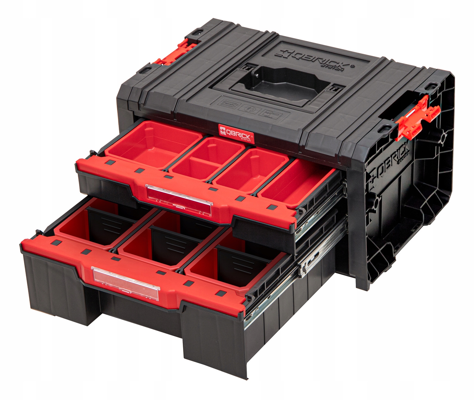 Qbrick System PRO Drawer 2 Toolbox Expert — это вместительный модульный ящик для инструментов, оснащенный тремя выдвижными ящиками на металлических направляющих. Удобная кнопка обеспечивает легкий доступ к их содержимому. Версия ящика Expert оснащена 6 регулируемыми отделениями и 10 контейнерами, позволяющими разместить как длинные, так и небольшие принадлежности для мастерской.