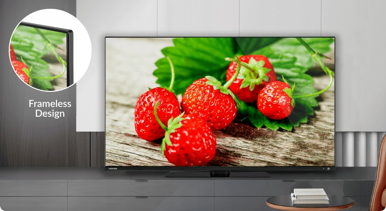 Qled Toshiba TV очень современные, и они выглядят так. Бесплатный дизайн серии QA7D выглядит роскошно и элегантно. Отсутствие четкой рамки создает впечатление, что экран кажется намного больше. Оборудование будет отлично смотреться в вашем салоне.