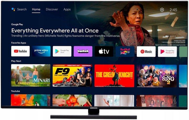 Телевизор Medion оснащен тройным тюнером, который позволяет смотреть эфирное телевидение (DVB-T/-T2), кабельное телевидение (DVB-C) и спутниковое телевидение (DVB-S2). Наслаждайтесь качественным изображением дома, на участке, в горах, у озера и в любом другом месте.