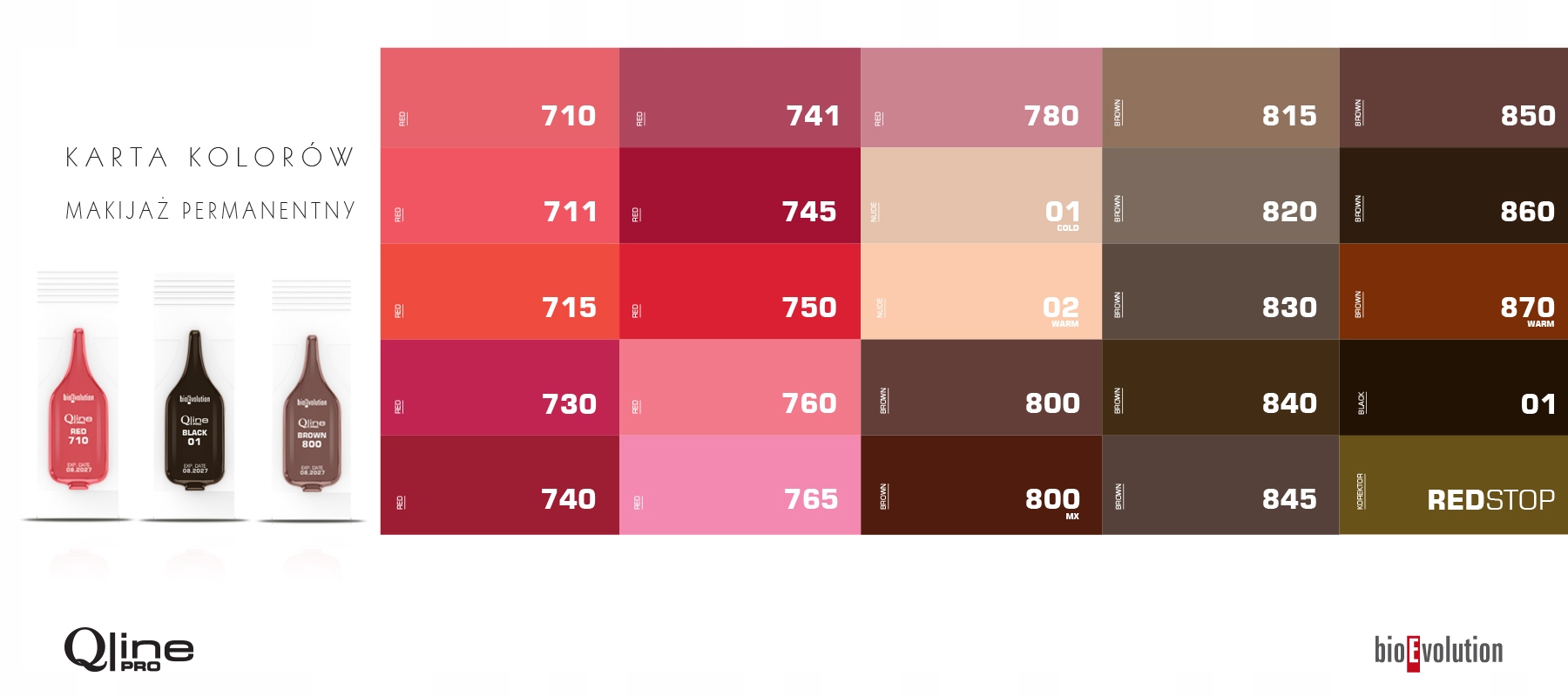 Новая линейка красителей BioEvolution QLINE PRO обеспечивает высокую стойкость макияжа, простоту нанесения, стабильность красителя в коже и безопасность. Красители BioEvolution безопасны для здоровья и не вызывают аллергии. Они производятся в соответствии с Регламентом Комиссии Европейского Союза 2020/2081 REACH, касающимся, среди прочего, содержание тяжелых металлов и других примесей, входящих в состав красок для татуировок или перманентного макияжа.