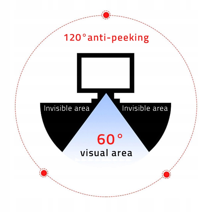 Инновационная технология для вашей конфиденциальностиТехнология микрожалюзи отвечает за узкий угол обзора. Приватизационный фильтр Qoltec скрывает секрет современных технологий, обеспечивающих надежную защиту. Используя усовершенствованные микрорешетки, этот фильтр обеспечивает обзор экрана под углом 60 градусов спереди, предотвращая при этом просмотр нежелательными людьми сбоку. Даже под небольшим углом обзора изображение становится нечитаемым, а при угле обзора 30 градусов экран полностью затемняется, обеспечивая защиту вашей конфиденциальности в любой ситуации.