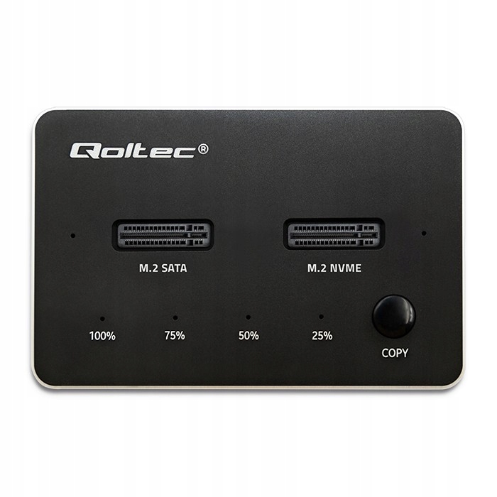 Станция совместима с дисками M.2 с интерфейсами SATA и NVMe. Он обеспечивает скорость передачи данных до 10 Гбит/с. Кроме того, дисковод марки Qoltec представляет собой устройство: