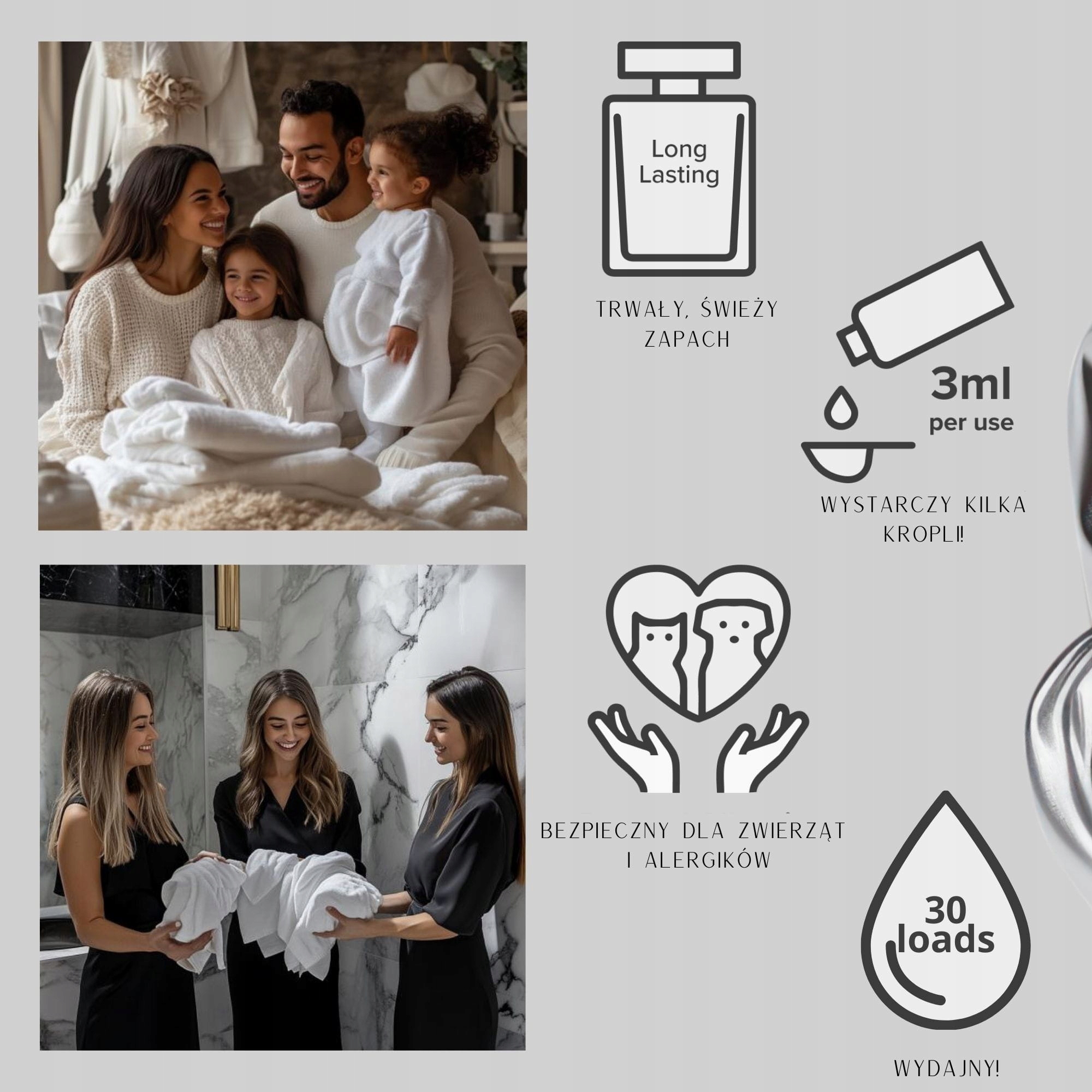 • Легко в использовании - просто добавьте правильное количество духов в проморстный жидкий отсек или непосредственно в платок сушилки, чтобы насладиться прекрасным запахом
