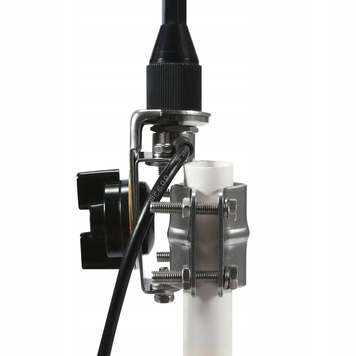 Универсальный кронштейн из нержавеющей стали крепится к вертикальным или горизонтальным направляющим или перекладинам максимальным диаметром 200 мм. Регулировка на 180 градусов.