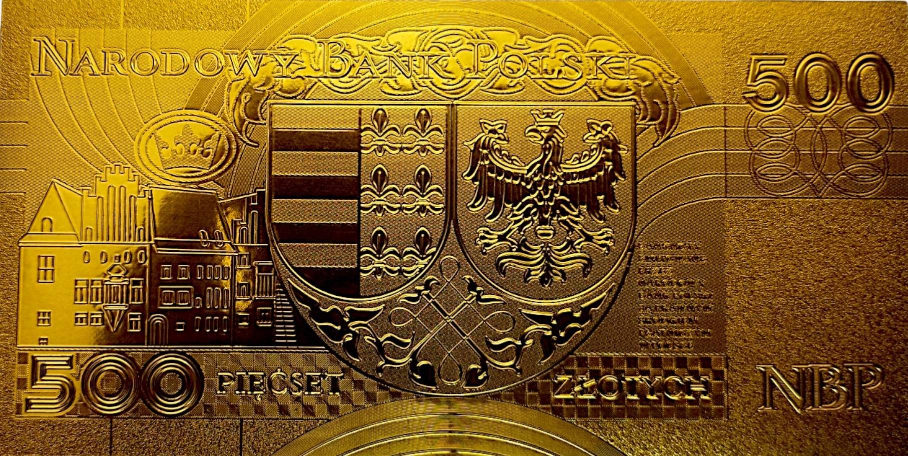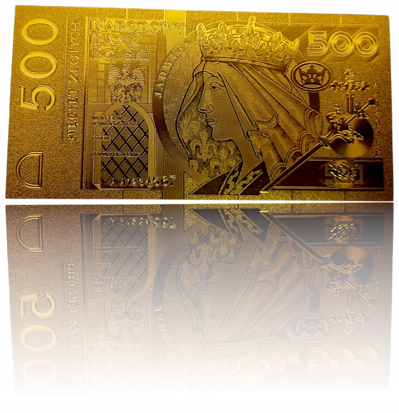 QUEEN HADWIGA 500 ZŁOTYCH Уникальная позолоченная банкнота ЗОЛОТОЙ ПОДАРОК