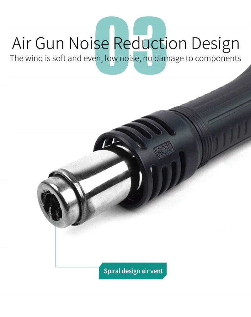 вентилятор колбы горячего воздуха приводится в движение бесщеточным двигателем, что обеспечивает гораздо более высокую долговечность и надежность устройства, чем в случае с компрессорными решениями,