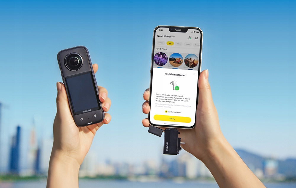 Наслаждайтесь быстрой передачей файлов без подключения через Wi-Fi. Созданный для Insta360 X3 Quick Reader, он может выступать в качестве внешней памяти камеры — просто вставьте карту microSD (не входит в комплект). Таким образом, вы можете быть уверены, что вам не хватит места для ваших видео! Закончив запись, подключите аксессуар к телефону и с легкостью скопируйте выбранные материалы. Камеру не обязательно включать, что позволит сэкономить заряд аккумулятора. Quick Reader поддерживает Plug&Play и обеспечивает быстрое и стабильное соединение. Более того, он оснащен двумя разъемами — USB-C и Lightning, а это значит, что он совместим с устройствами под управлением Android и iOS. Теперь загружать и редактировать материалы станет еще проще!