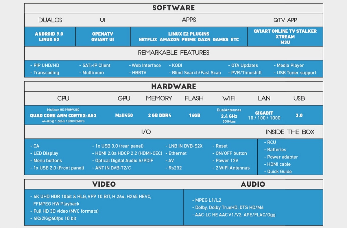 Qviart DUAL OS E2 + Android 4K DVB-S2X / T2 / C