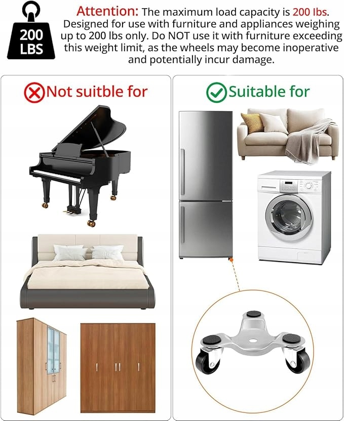 QWORK 4 мебельных ролика 152 мм, грузоподъемность 90 кг, 3 поворотных колеса, вспомогательное средство для перемещения, прочный и простой в использовании
