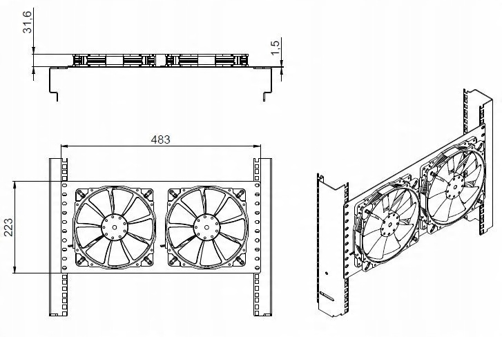 R -case - 200 вентилятор \ Монтажная подставка Дополнительное охлаждение до стойки 19