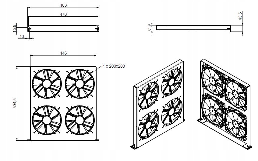 R-CASE - 200 FAN-плита 1U дополнительное охлаждение для RACK 19 - 4 x 200
