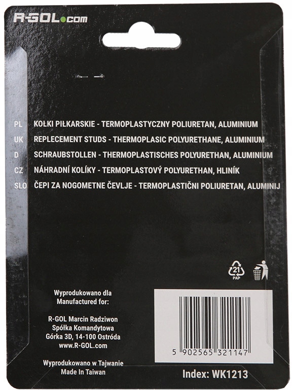 Просматривая «R-GOL Шипки для футбольных бутсов ТПУ 12х13 мм 12 шт.», вы можете быть уверены, что данный товар из каталога «Остальные» будет доставлен из Польши и проверен на целостность. В цене товара, указанной на сайте, учтена доставка из Польши. Внимание!!! Товары для Евросоюза, согласно законодательству стран Евросоюза, могут отличаться упаковкой или наполнением.