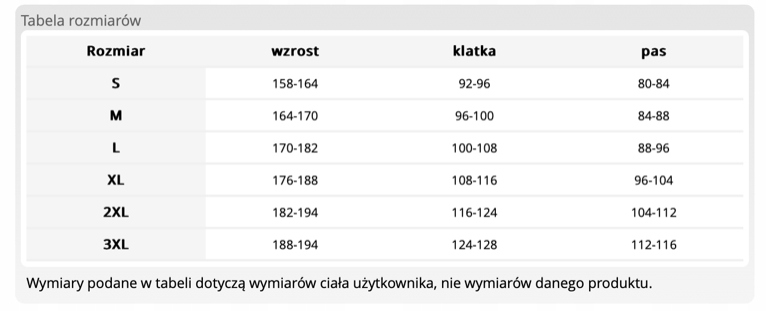 Доступные размеры (на основе роста и схемы грудной клетки):
