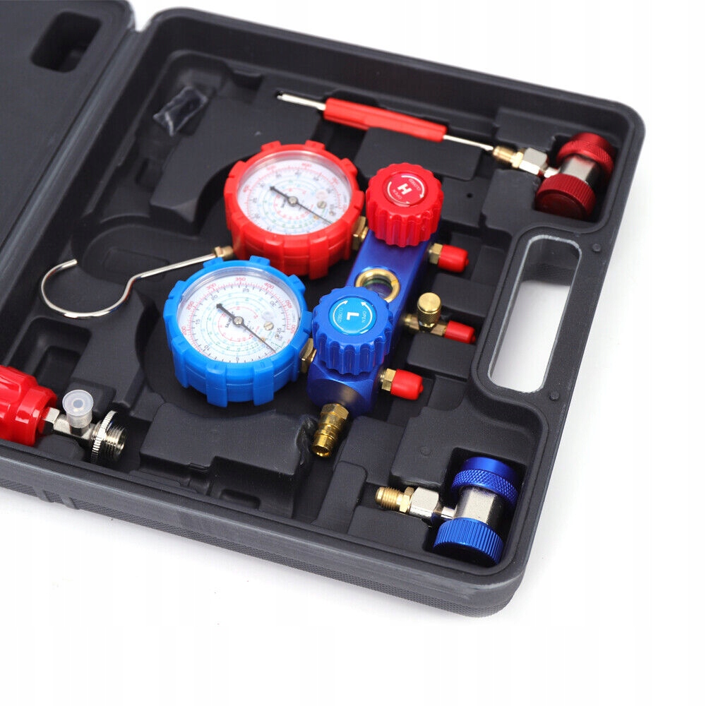 🧊- Включаетдвухцветные манометры высокого и низкого давления, что упрощает и безопаснее проверку системы кондиционирования вашего автомобиля.