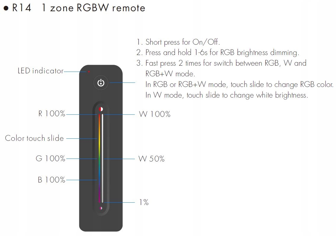 1-зонный сенсорный радиопульт RGB+W R14 с белой светодиодной подсветкой, магнитный держатель