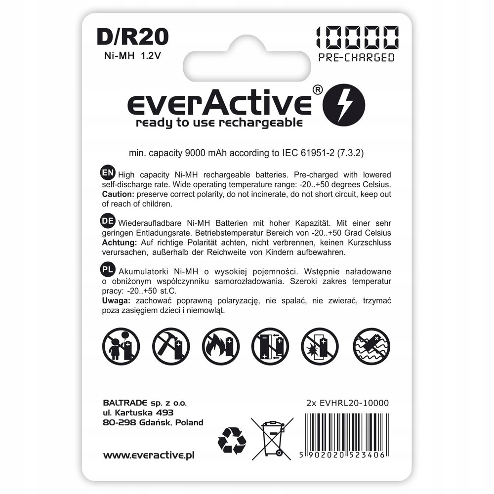 R20 everActive D Ni-MH батареї 10000 мАг готові до використання - 2 шт.