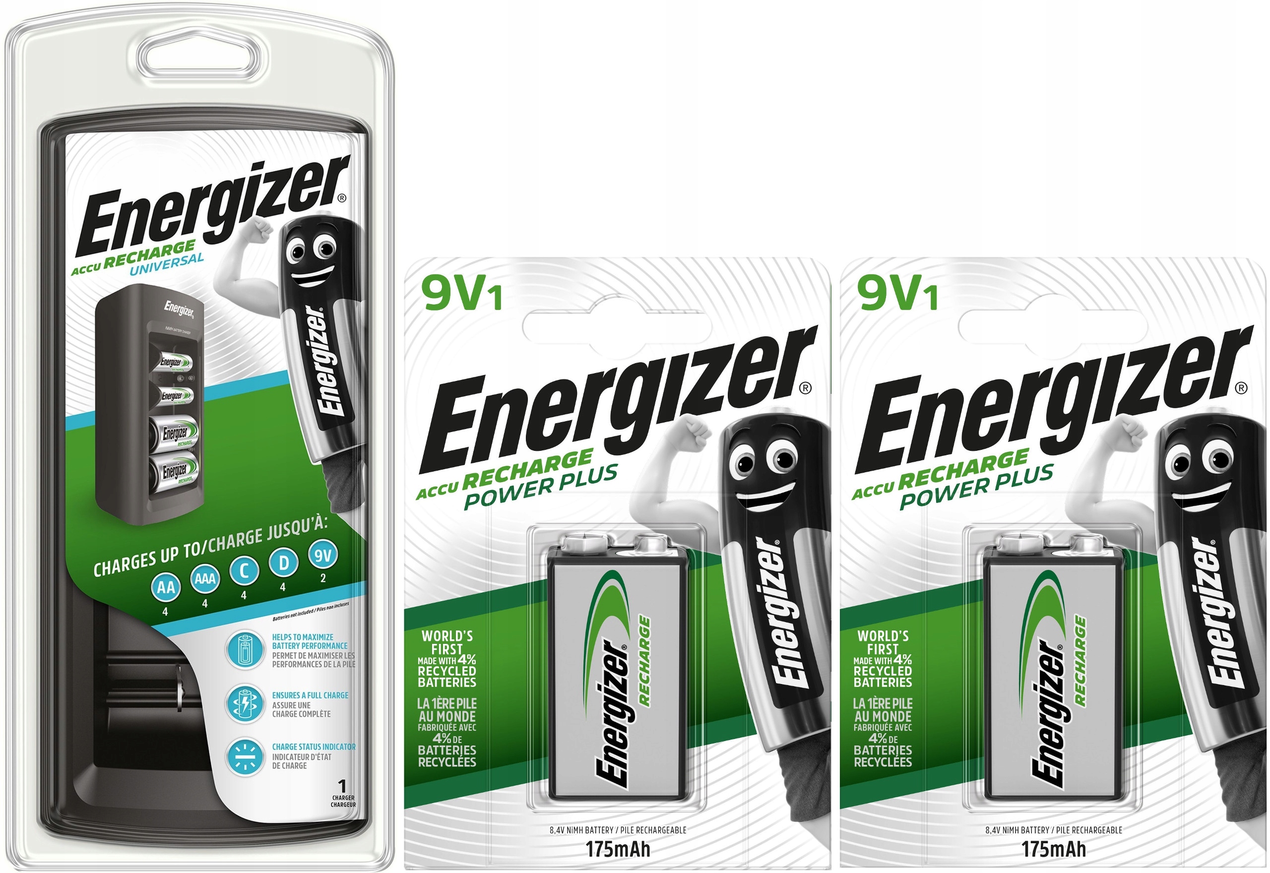 Набор универсального зарядного устройства Energizer® + 2 аккумулятора Power Plus 9 В, 175 мАч