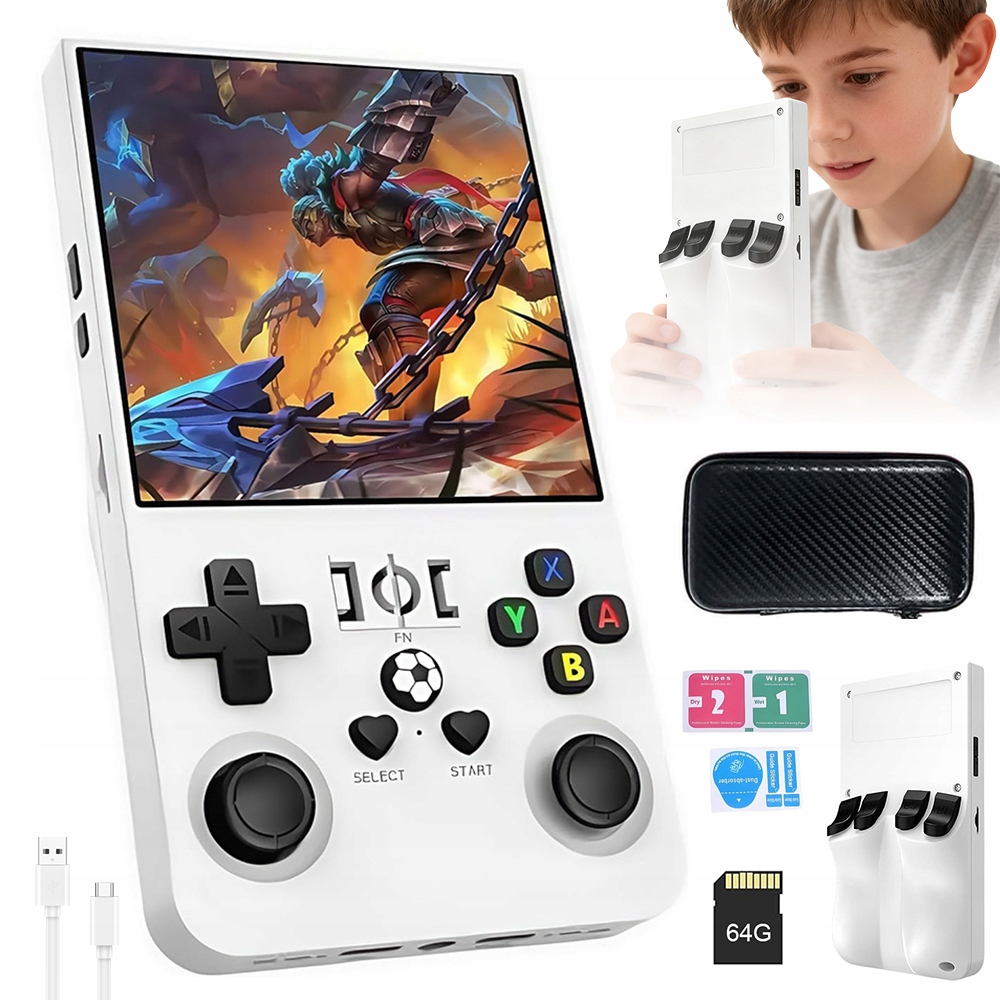 ИГРОВАЯ КОНСОЛЬ R36MAX WHITE 4.0 в стиле ретро с картой емкостью 64 ГБ и аккумулятором IPS емкостью 4000 мАч