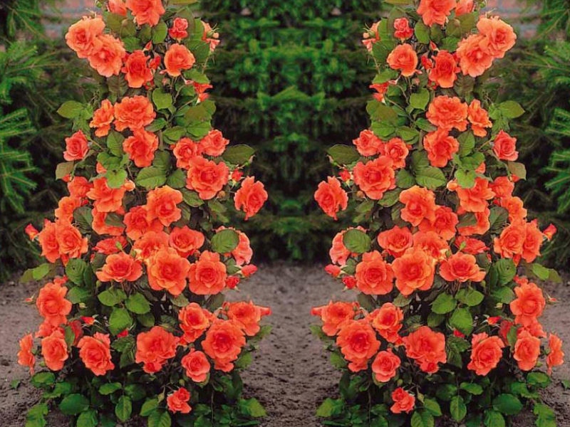 - Ценный, простой в выращивании сорт, с длительным и обильным цветением. Довольно устойчив к морозам. Цветки после раскрытия оранжевые, благородной формы, мало увядающие, многочисленные, около 8-10 см в диаметре. На побегах очень пышные, собраны в несколько соцветий. Интенсивный аромат. Высота ок. 1,5-2 м, ширина 1,5 м.