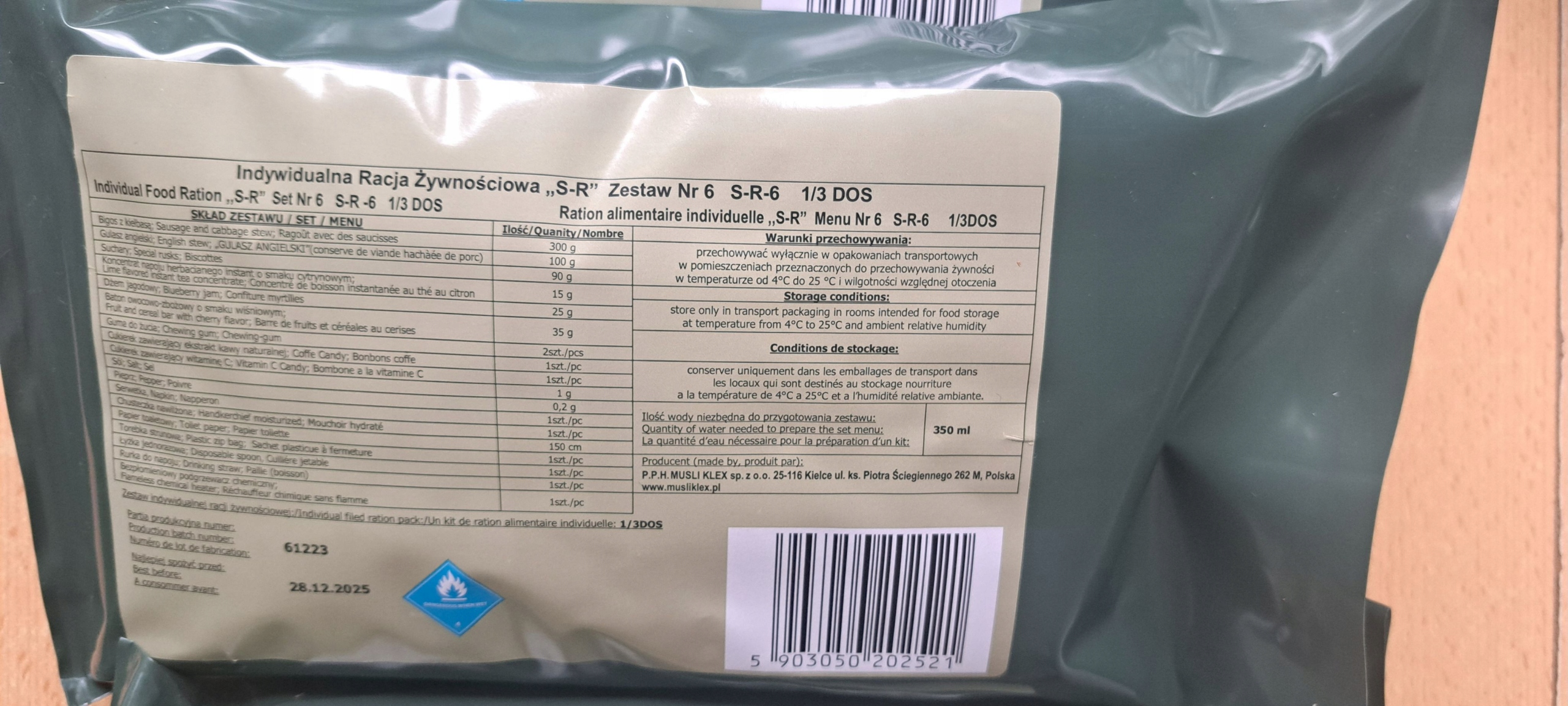 Racja żywnościowa Zestaw nr 6 S-R-6 1/DOS - 3 sztuki
