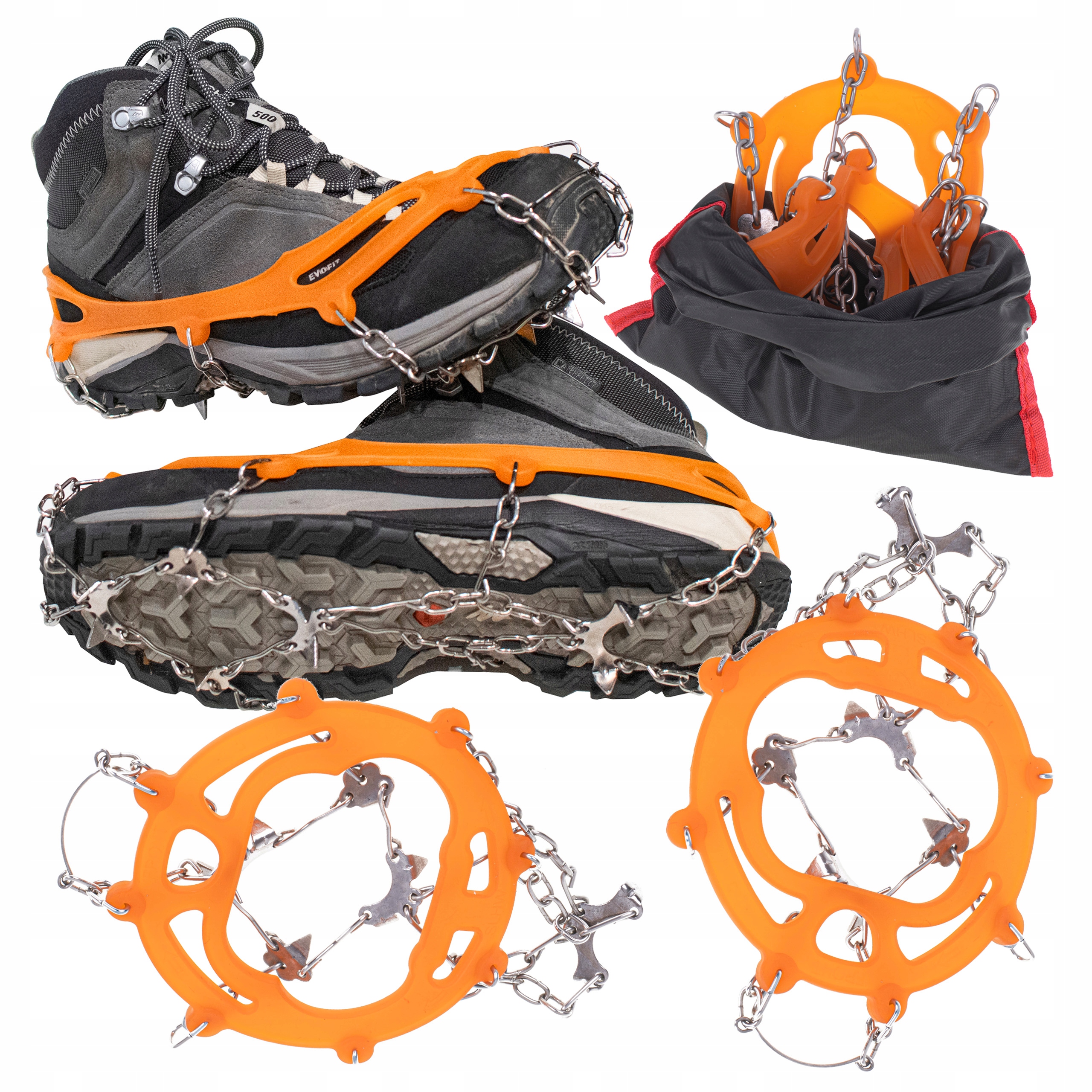 Практические раки для обуви являются незаменимым элементом оборудования во время зимних блуждающих и требовательных прогулок в скользкой зоне. Благодаря 8 закаленным стальным шипам и цепей из нержавеющей стали они обеспечивают отличную адгезию на ледяных поверхностях, камнях или взбитого снега. Они будут работать как в горах, так и в городских условиях - значительно повышение безопасности и стабильности и стабильности .