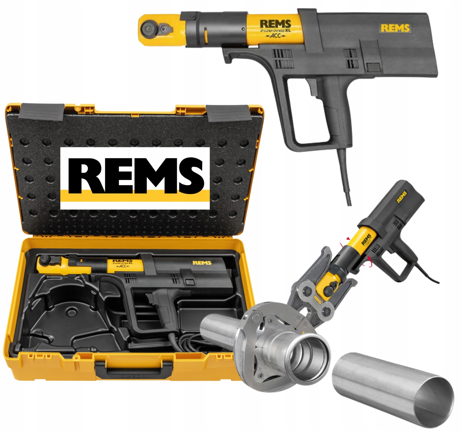 ЭЛЕКТРОГИДРАВЛИЧЕСКИЙ РАДИАЛЬНЫЙ ПРЕСС 32 кН POWER-PRESS XL ACC ОТ ПРИЗНАННОГО НЕМЕЦКОГО БРЕНДА REMS – УДОБНОЕ УНИВЕРСАЛЬНОЕ УСТРОЙСТВО С ПРИНУДИТЕЛЬНЫМ АВТОМАТИЧЕСКИМ ВОЗВРАТОМ.