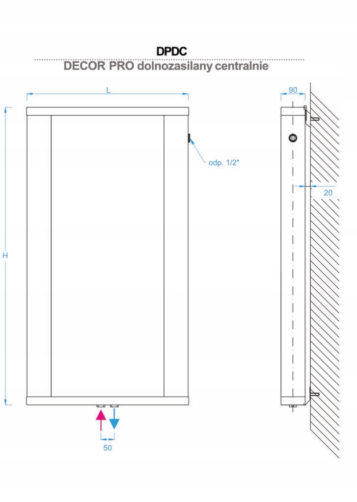 <ул>Радиаторы DECOR PRO имеют централизованное питание снизу. Подключение фиксированное: соединительная колодка в оси радиатора, подача/обратка – любая, шаг подключения – 50 мм. Внутренняя резьба ½ дюйма