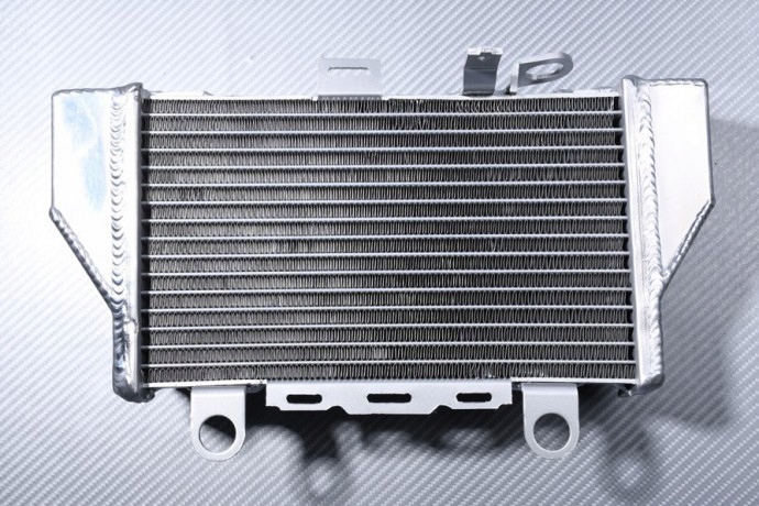 Эти радиаторы предлагаются в версии RACING, а именно: Средний общий вес на +/- 10% легче, чем в оригинальной версии. Система ребер расположена дальше друг от друга, что обеспечивает лучшее охлаждение контура. Оригинальное оборудование для легкой установки без модификаций. Внимание: из-за немного большей мощности радиаторов гоночного типа они немного больше и требуют модификации для размещения оригинальных воздуховодов.
